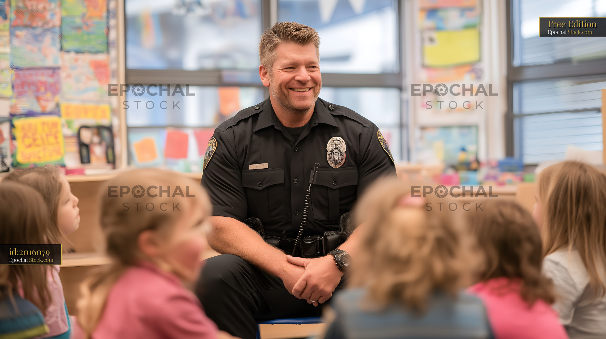 Officer visits classroom to engage with young students Free Premium Stock Photo