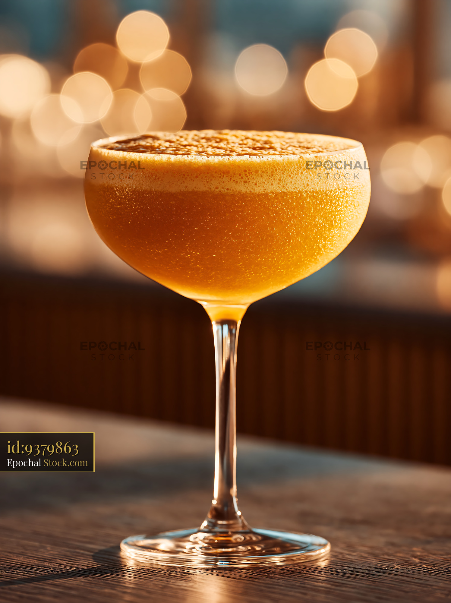 Pawpaw punch milkshake in a coupe glass with golden bokeh lights