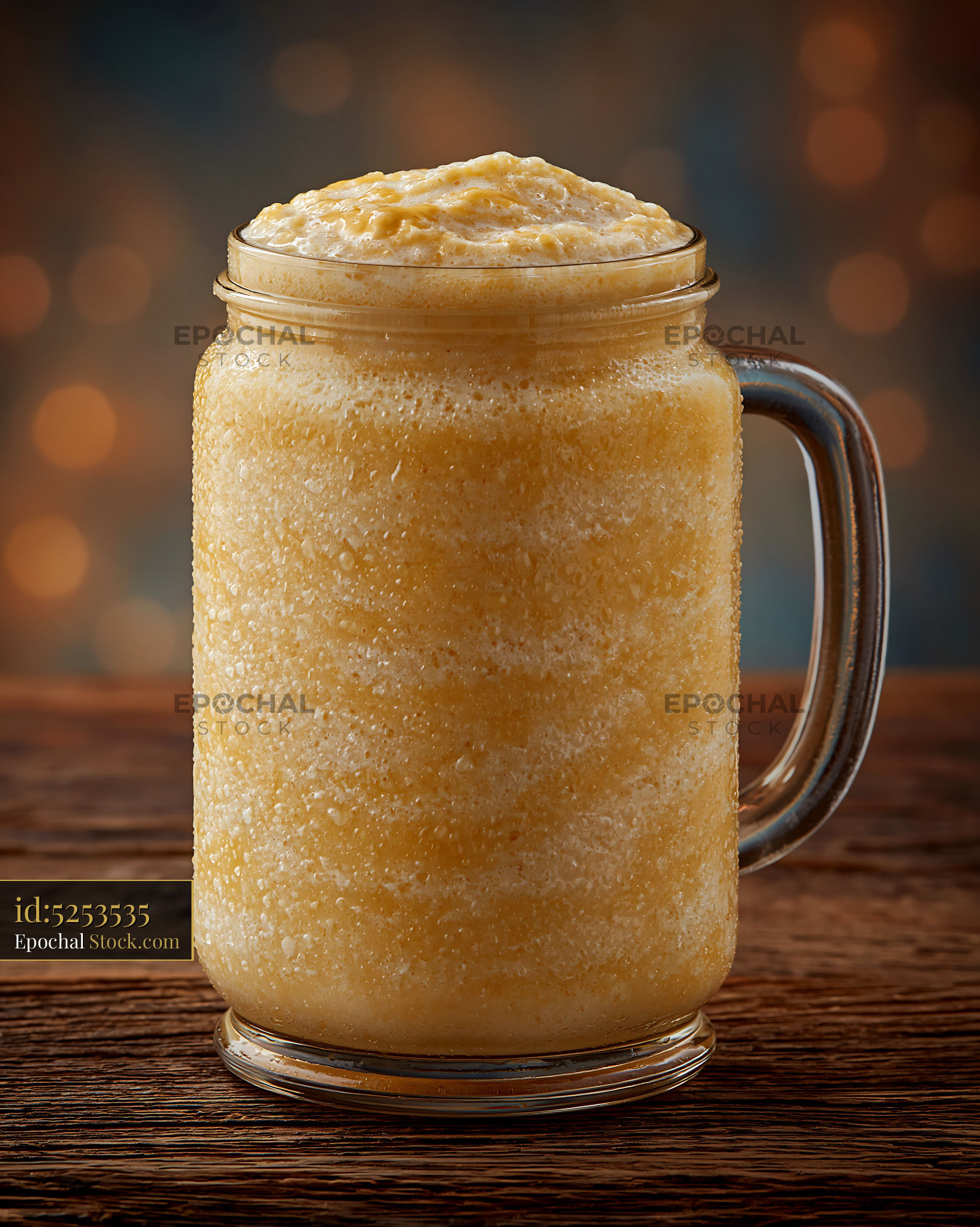 A refreshing pawpaw punch milkshake served in a frosted glass mug on a dark wooden surface, evoking tropical summer vibes and indulgent relaxation with its creamy, frozen texture.