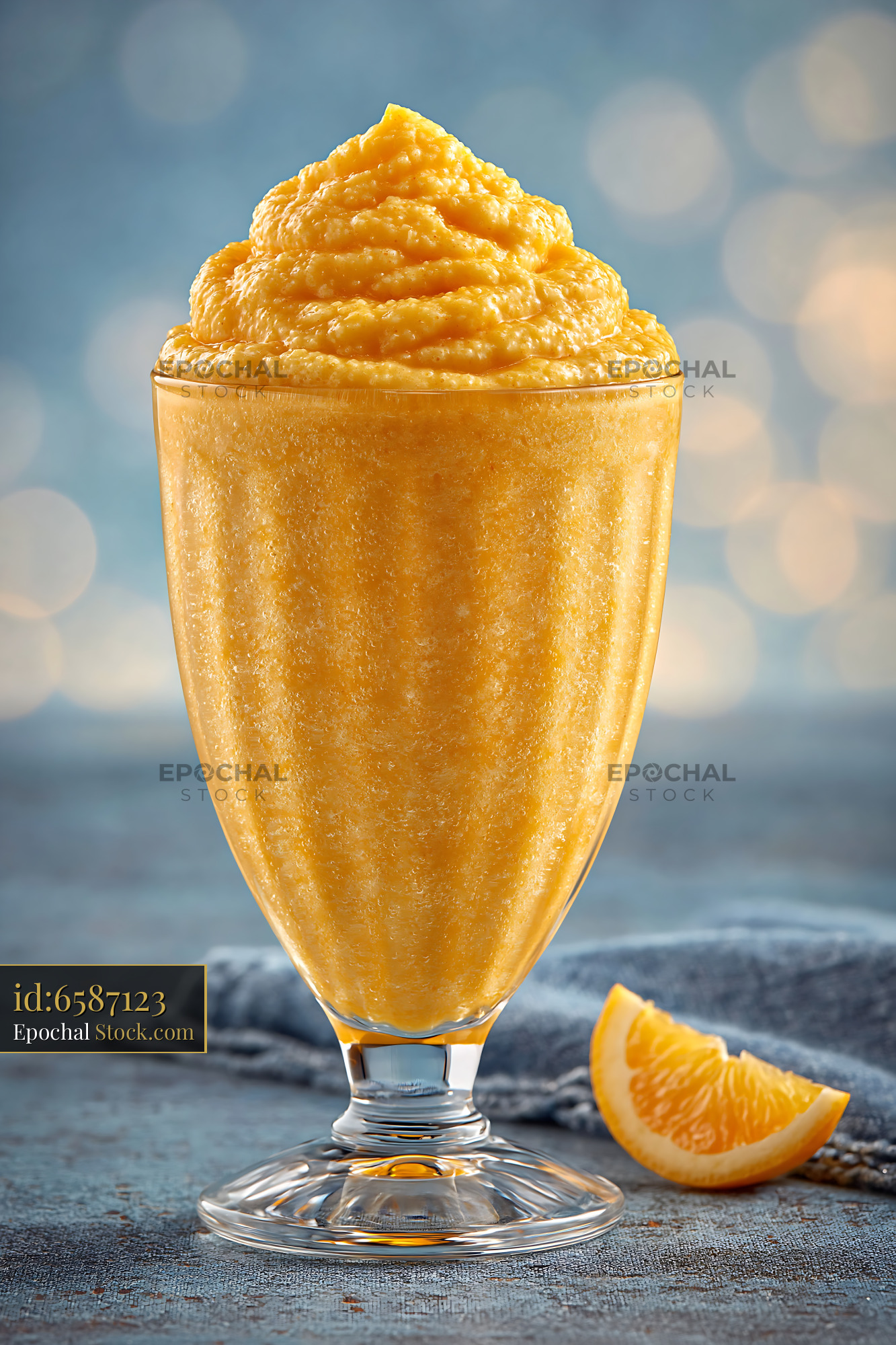 A refreshing pawpaw punch milkshake served in a textured glass, accompanied by a fresh orange slice, capturing the essence of a vibrant, healthy tropical treat.
