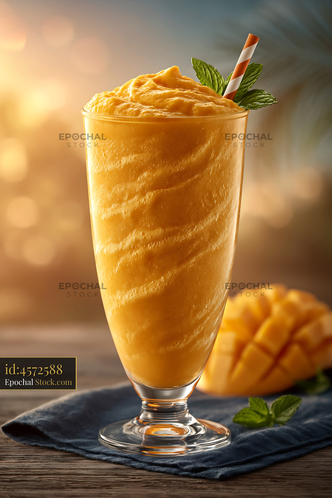 Pawpaw punch milkshake with fresh mint in warm golden sunlight