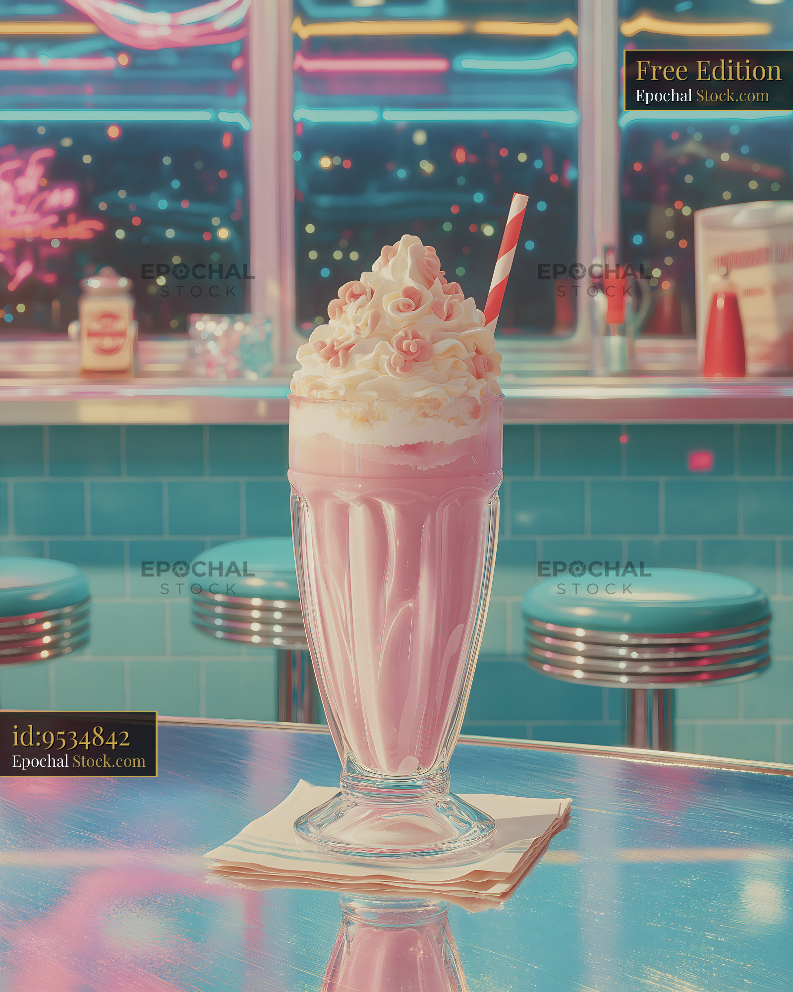 Pink milkshake on a diner counter at night Free Premium Stock Photo