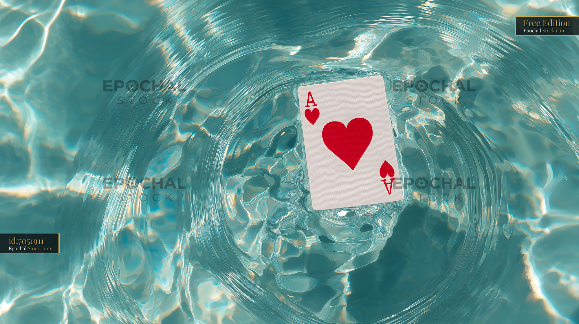 Playing card floats in blue water during sunny day Free Premium Stock Image