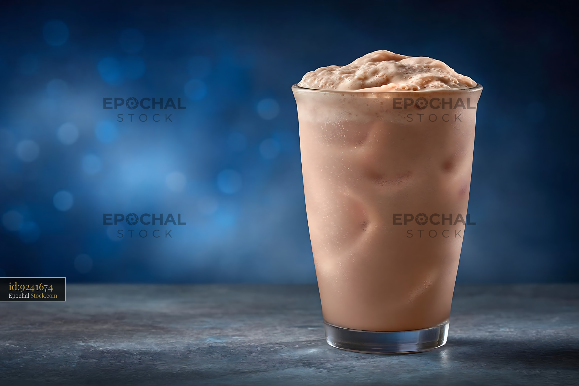 A refreshing plum wine cream milkshake stands on a dark surface, featuring a thick foam head and condensation, evoking a mood of sophisticated evening relaxation and indulgence.