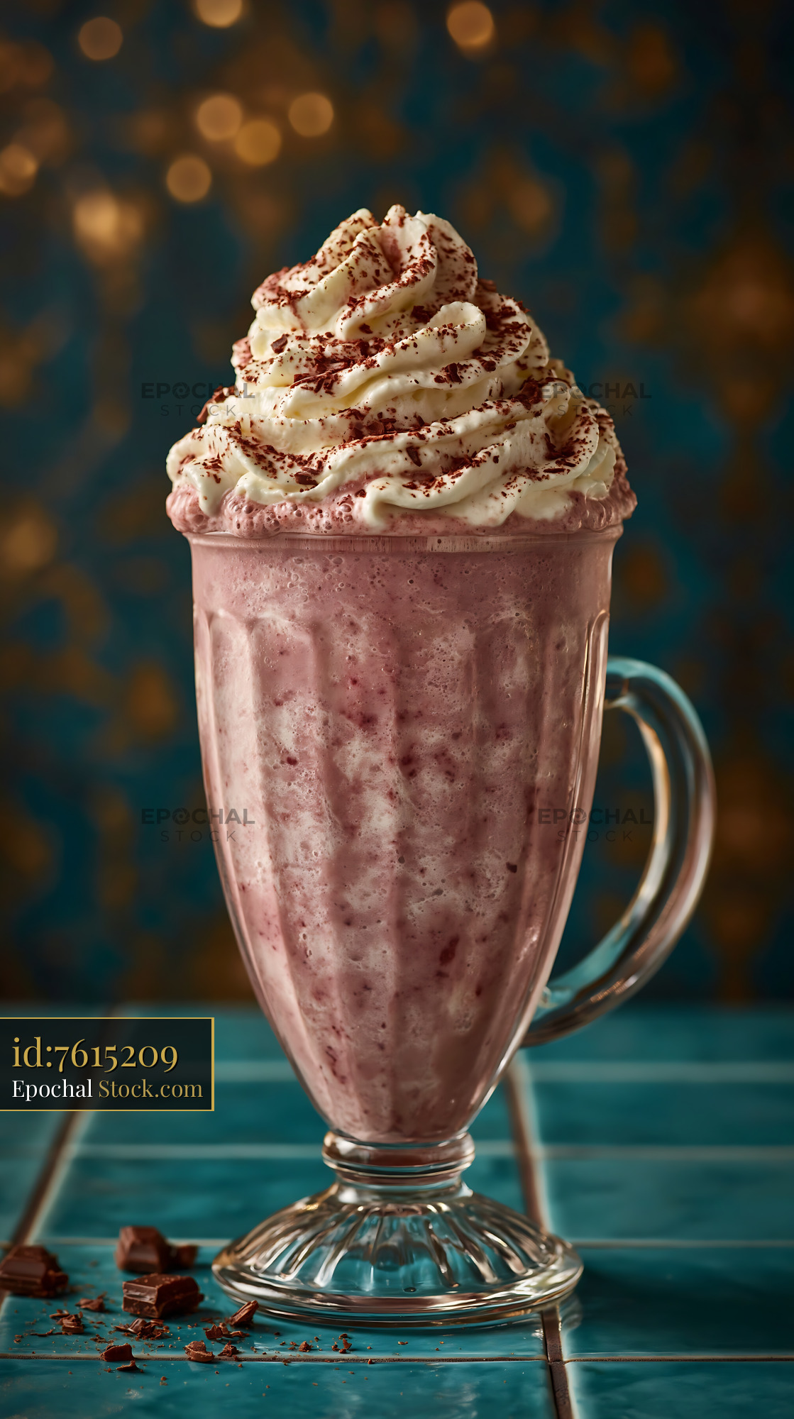 Plum wine cream milkshake with whipped cream and chocolate shavings