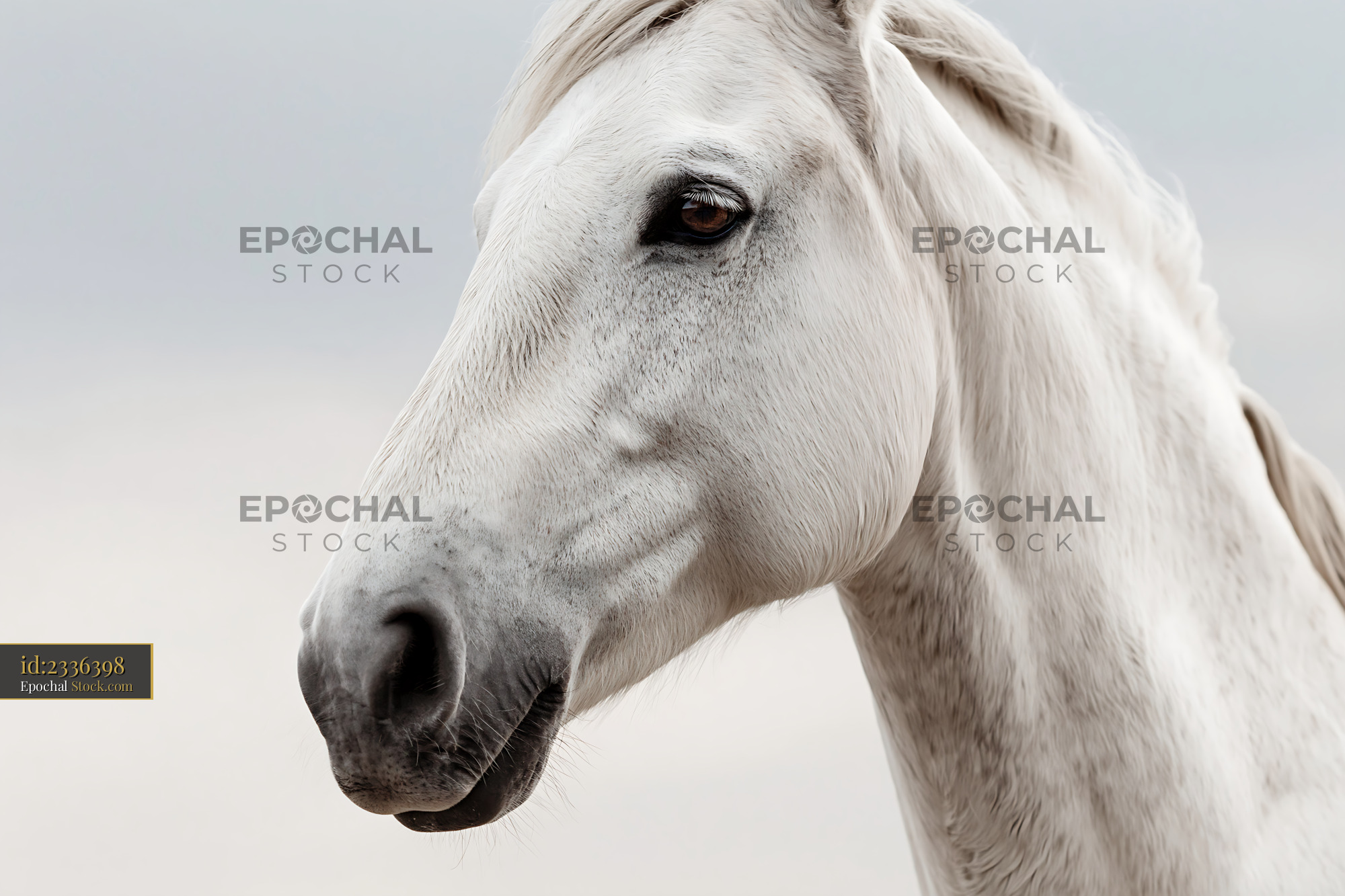 A close-up profile portrait of a white horse with a gentle expression, embodying grace, freedom, and the quiet power of nature.