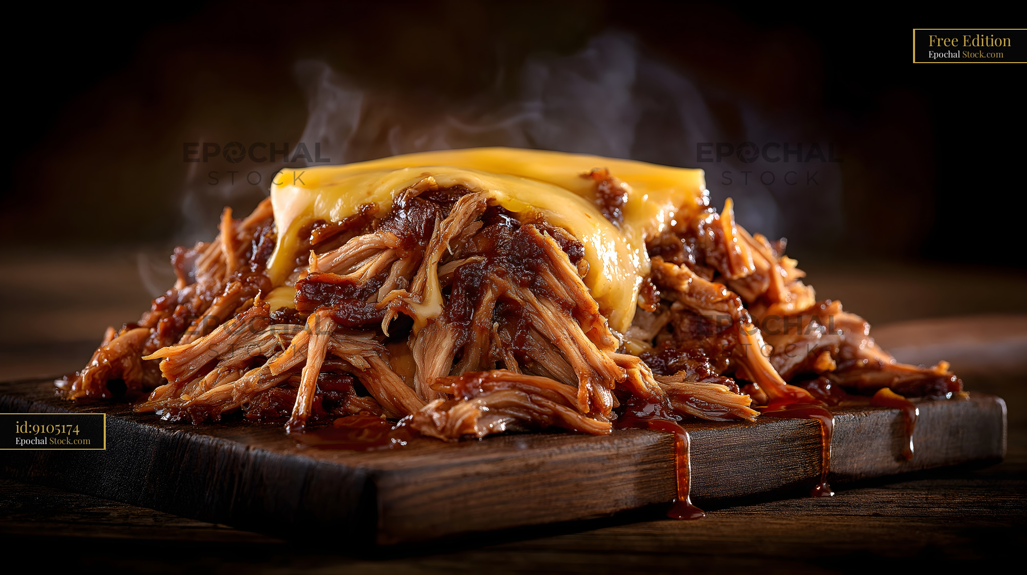 Pulled pork with cheese on wooden board during dinner time Free Premium Stock Image