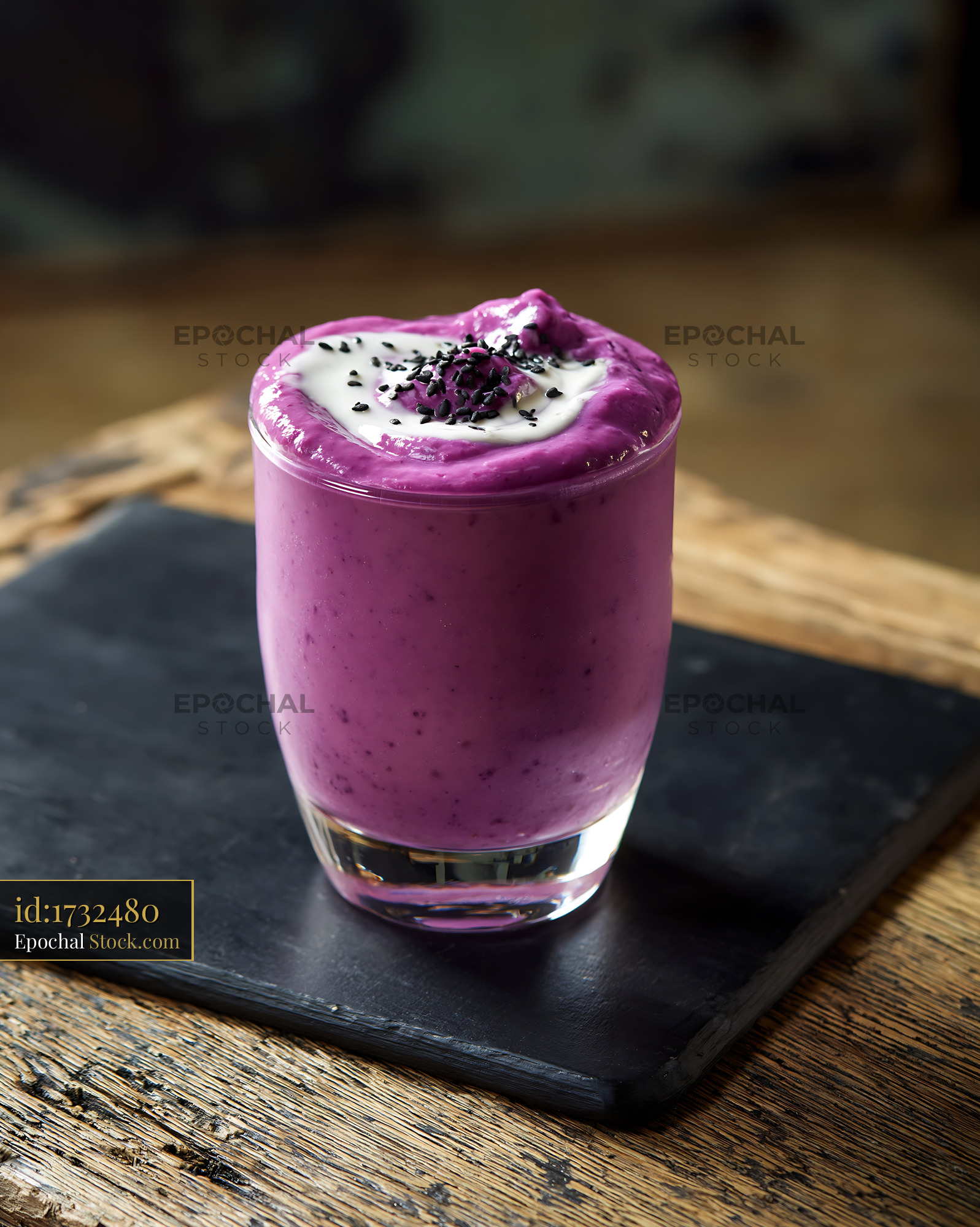 Purple sweet potato smoothie with yogurt topping and black sesame seed