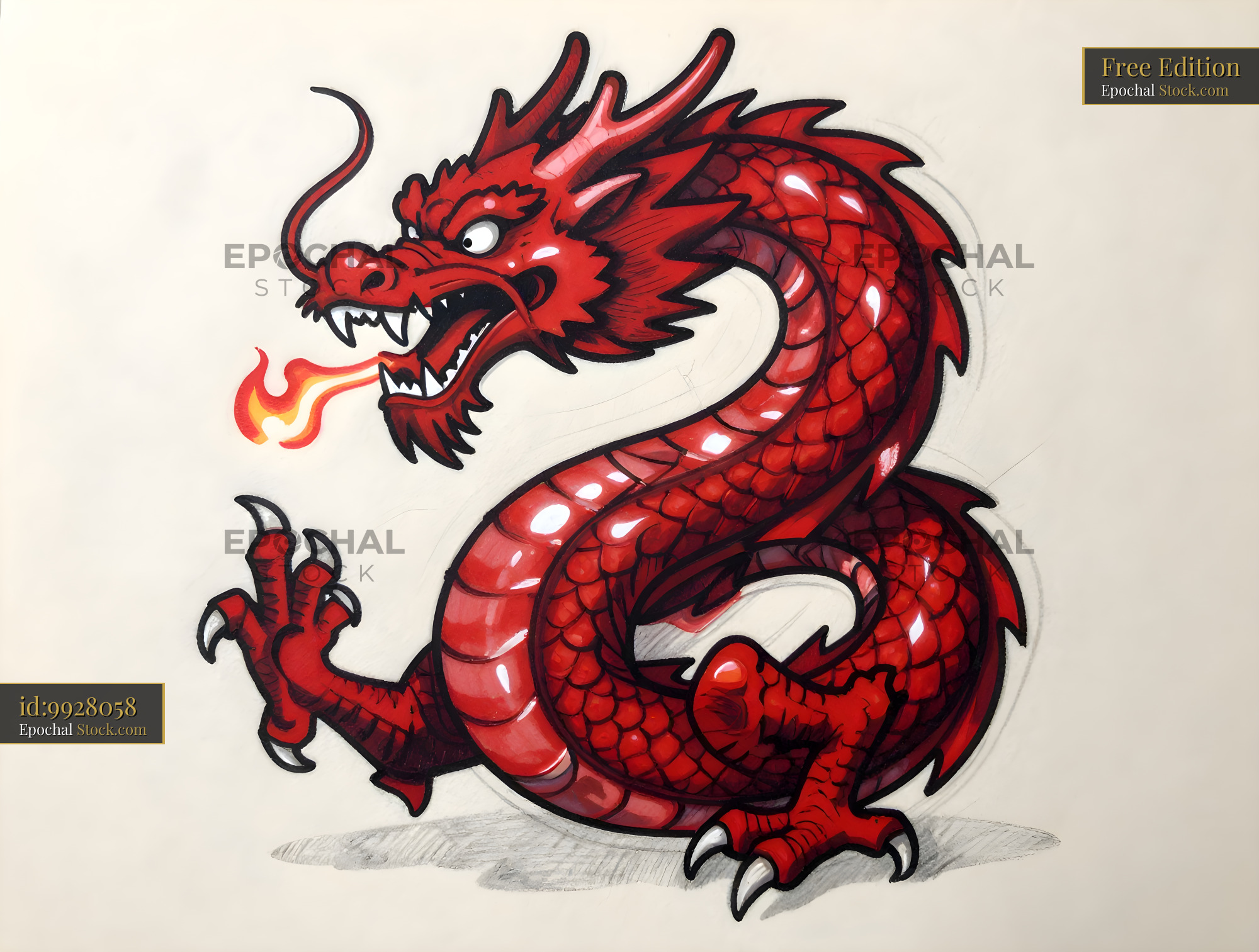 Red dragon illustration showing fire and fierce expression Free Premium Stock Image