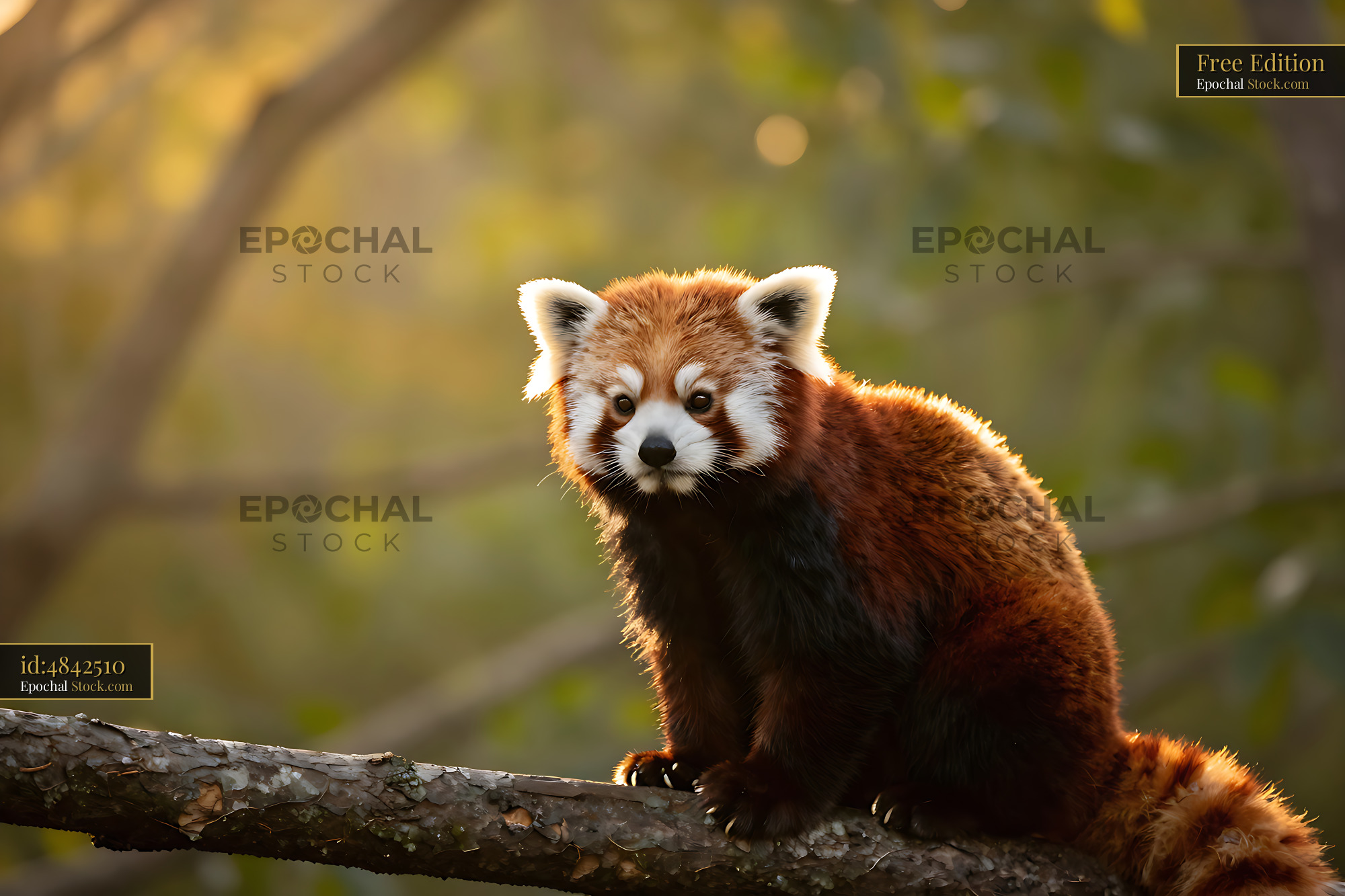 A charming red panda sits perched on a tree branch, illuminated by the warm, glowing light of the setting sun, capturing a moment of tranquility and connection with nature.