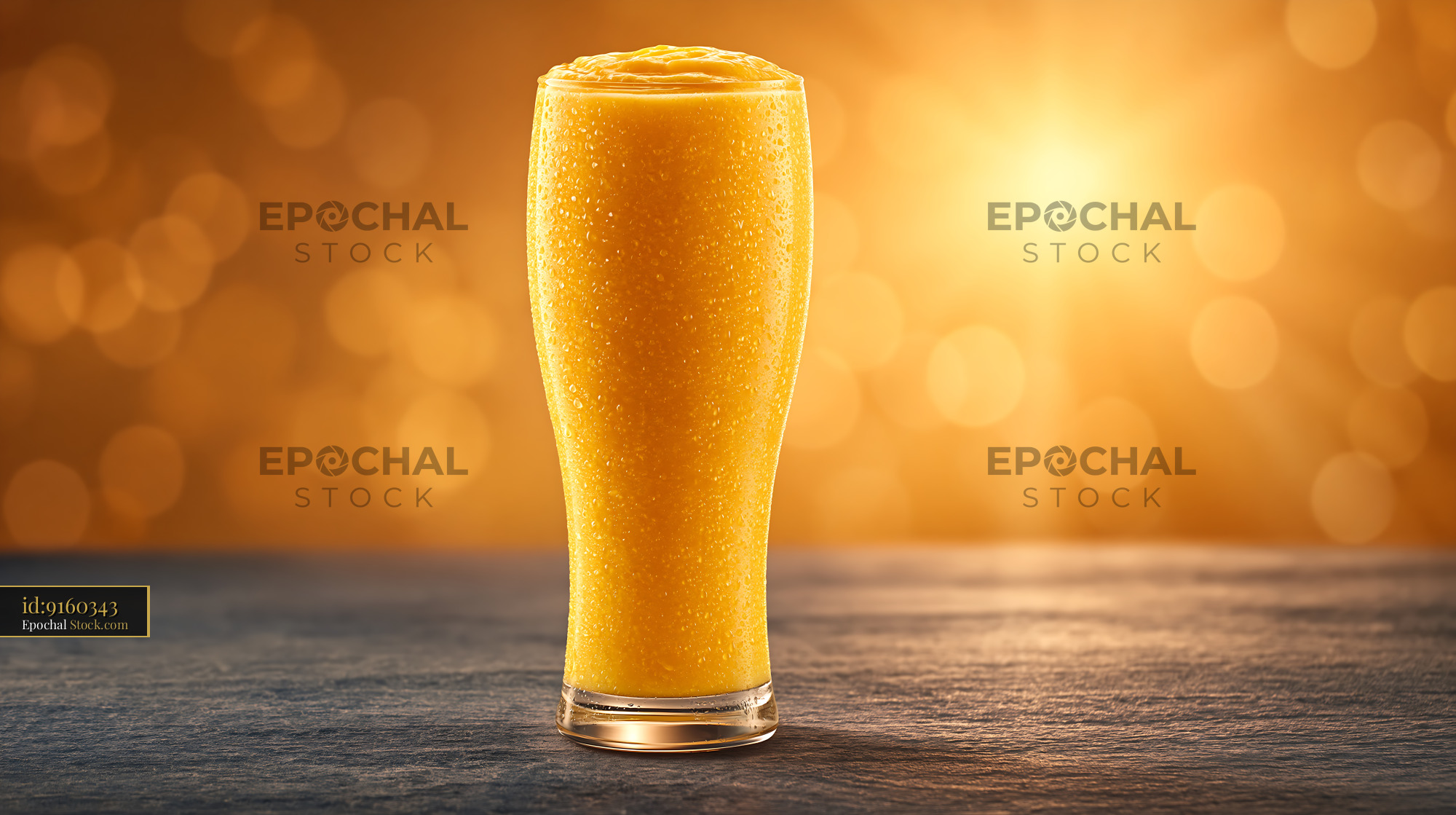 A chilled pawpaw punch milkshake sits on a textured surface against a warm, glowing golden hour background, evoking feelings of summer refreshment, indulgence, and tropical delight.