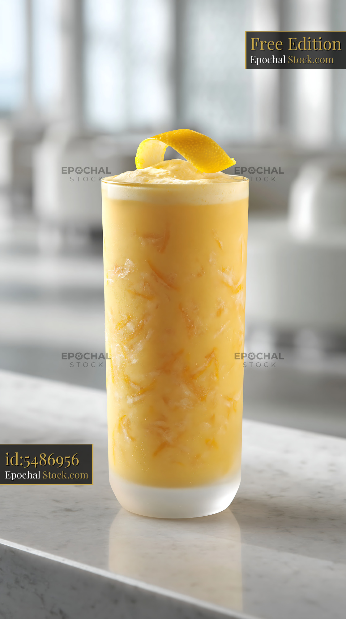 Refreshing yuja citron smoothie with citrus zest on marble counter
