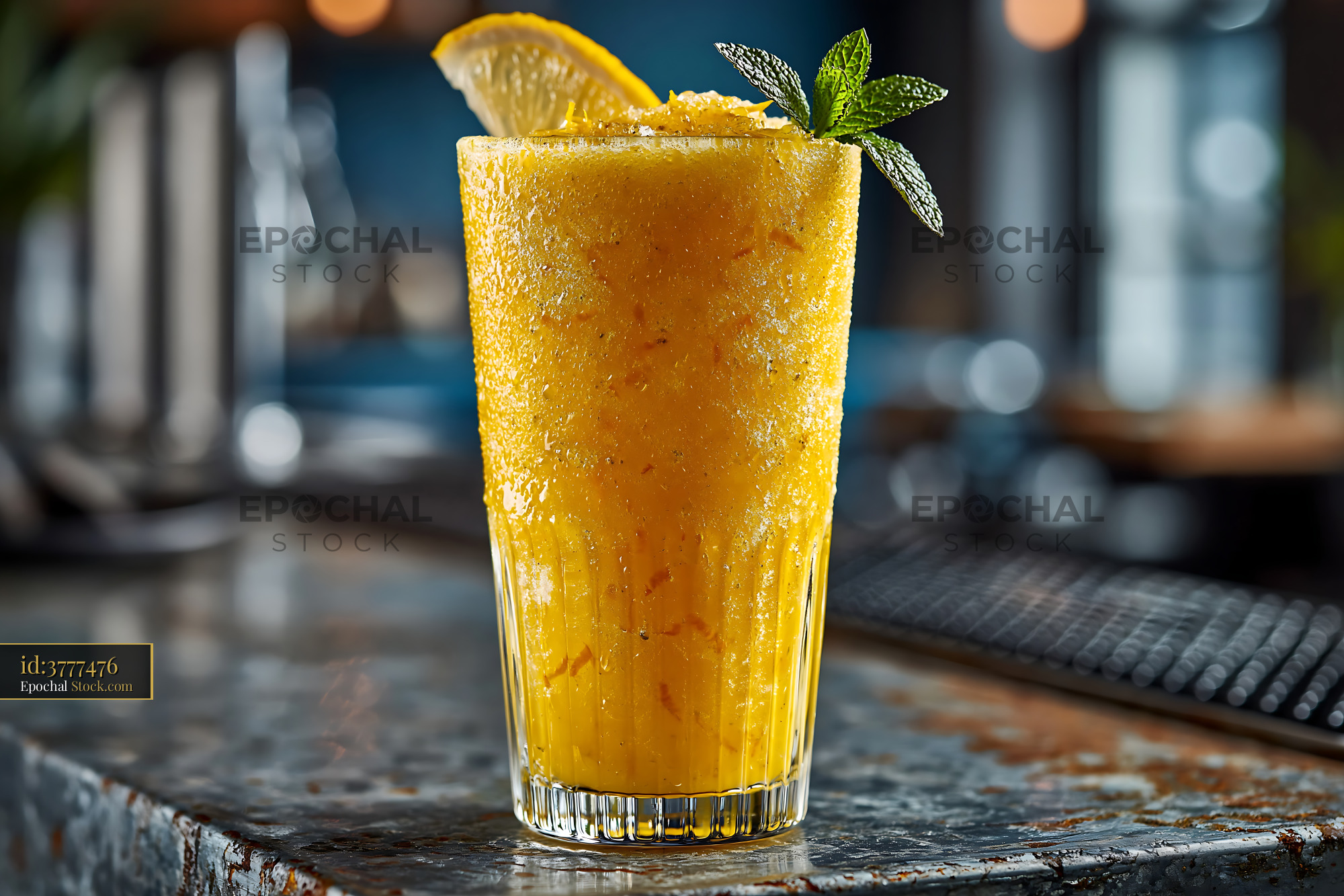 Refreshing yuja citron smoothie with mint garnish on a bar counter
