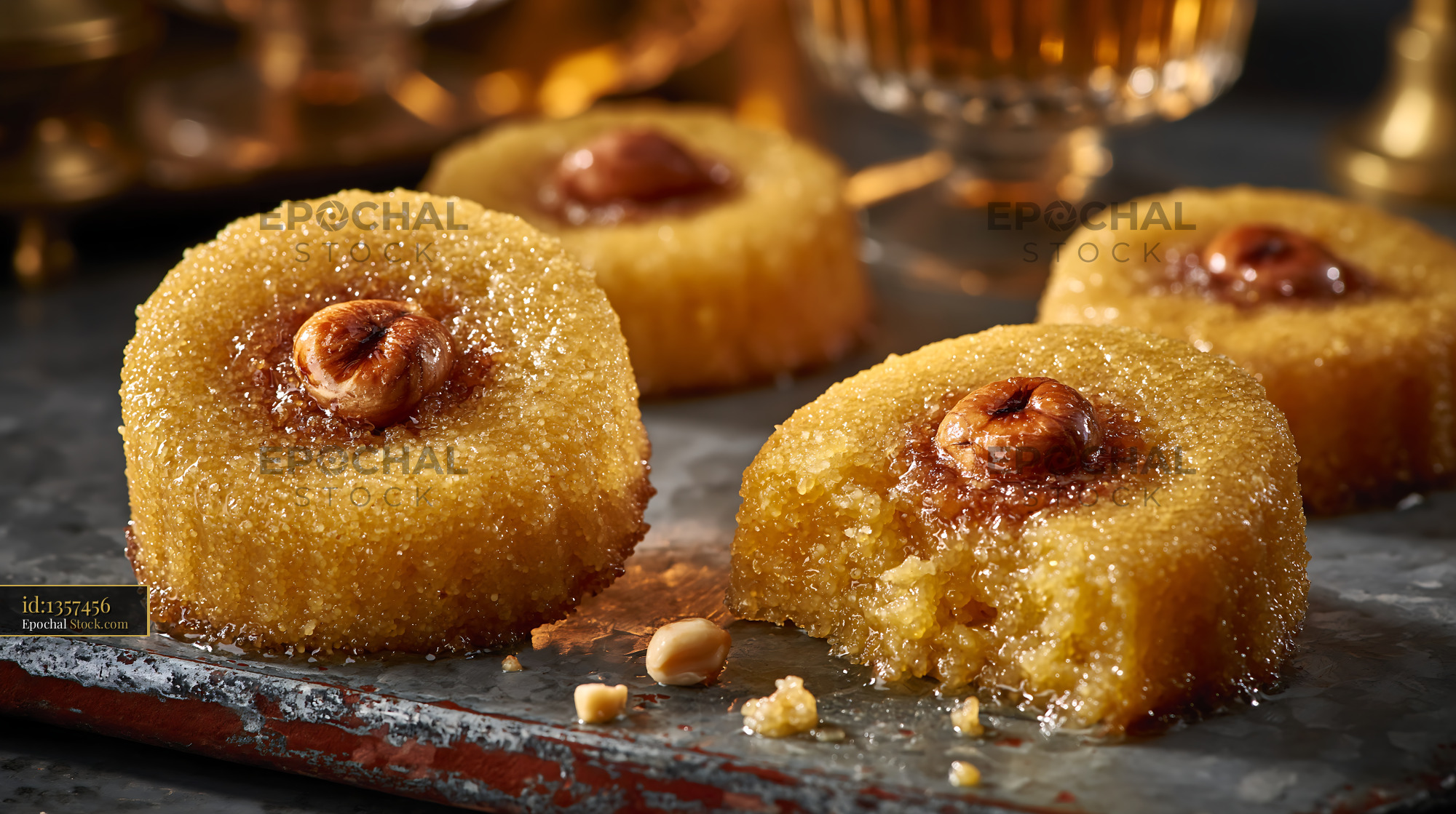 Golden semolina cookies topped with whole hazelnuts and drenched in sweet syrup, evoking the warm hospitality and rich culinary heritage of traditional Turkish dessert culture.