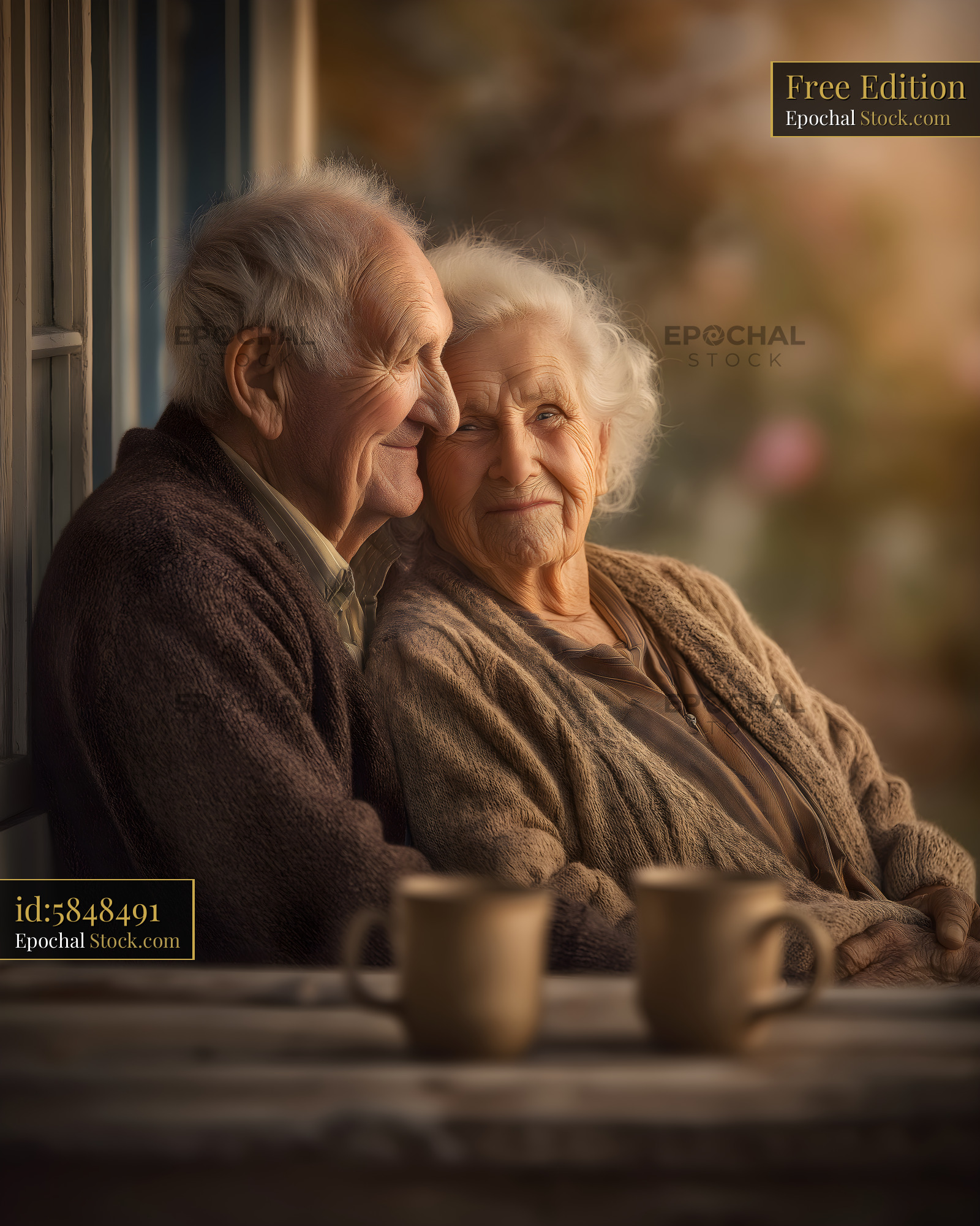 Seniors enjoy time together on a porch in warm light Free Premium Stock Image