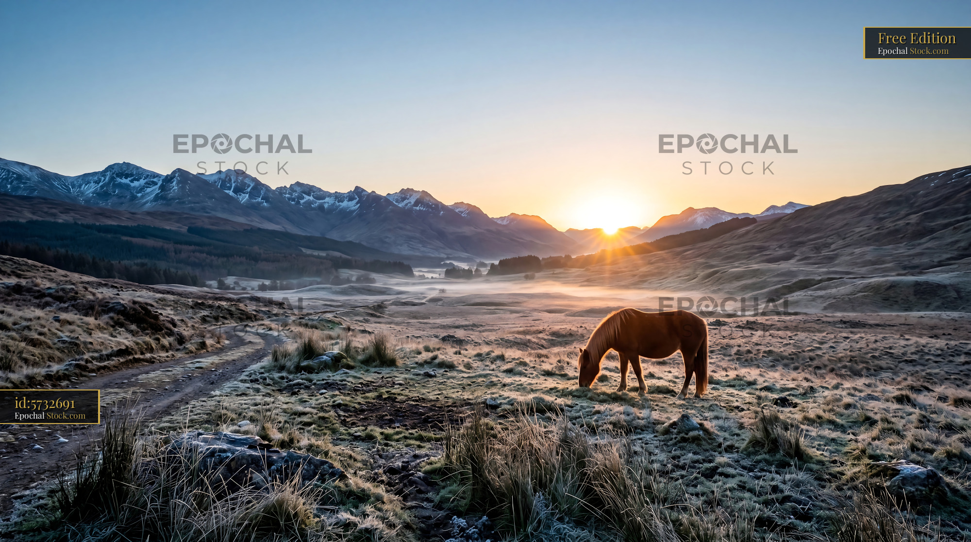 Serene Chestnut Horse Mountain Sunrise