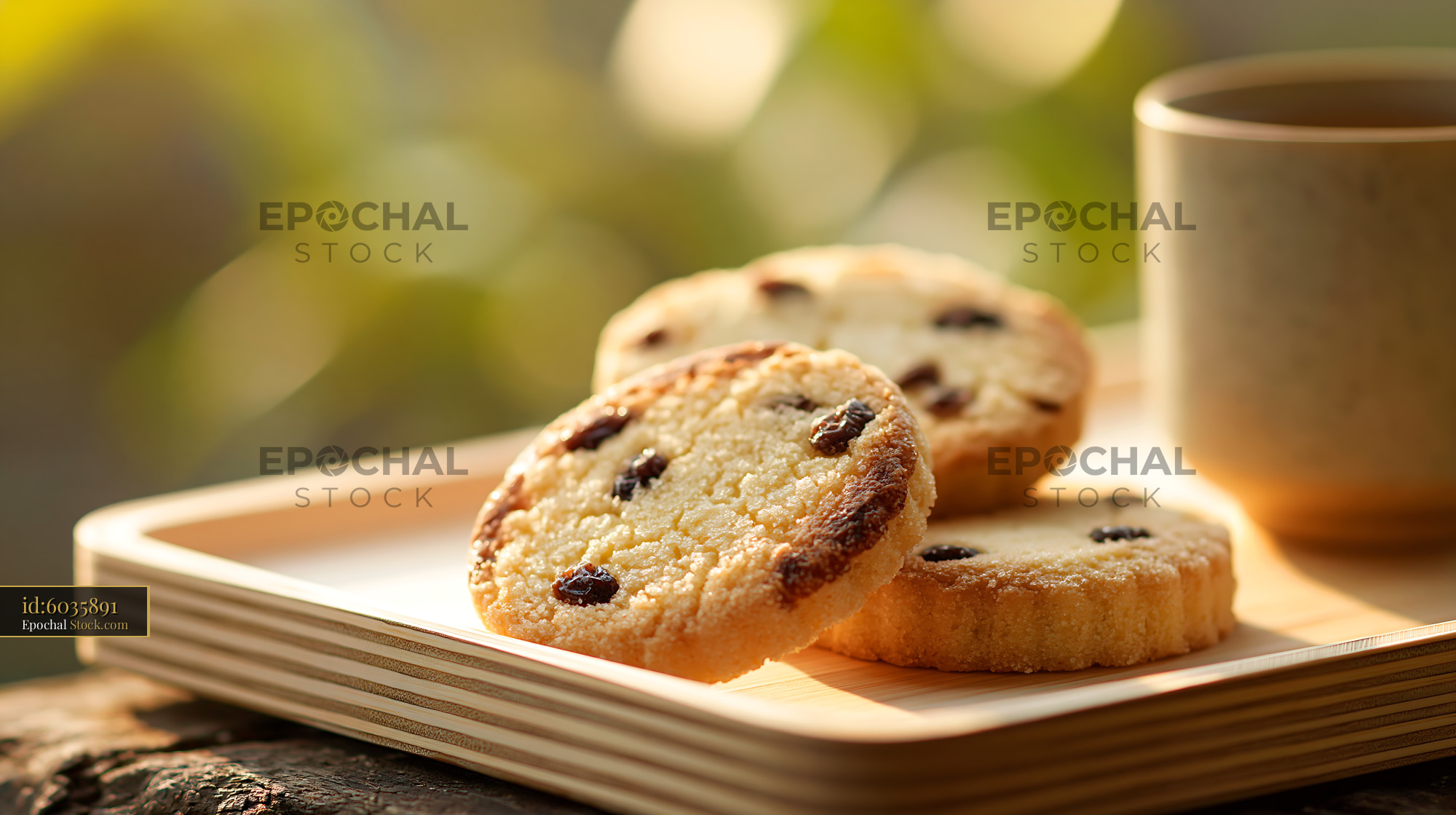 Freshly baked shirini kishmishi biscuits sit on a wooden tray, bathed in the warm glow of the late afternoon sun, evoking a sense of home, tradition, and a peaceful tea break.