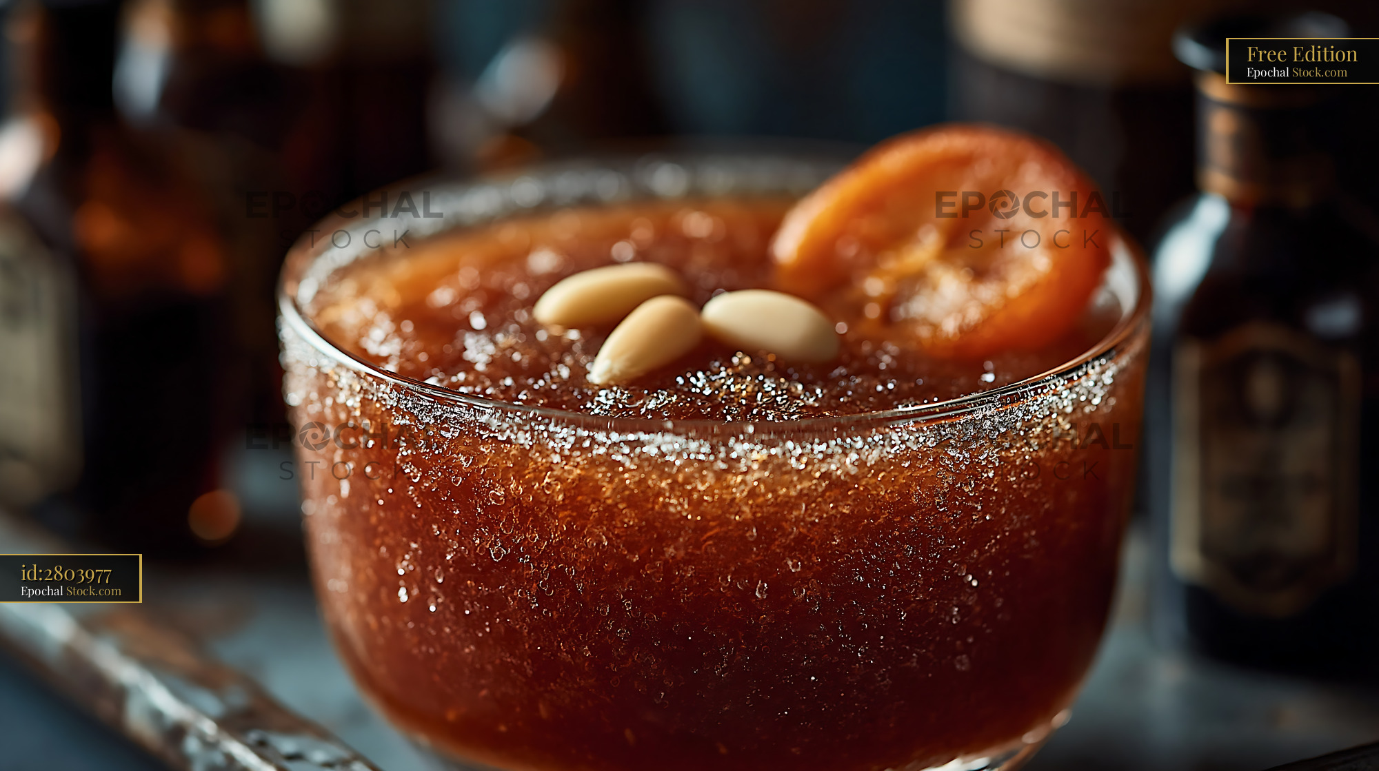A refreshing bowl of traditional Korean sikhye rice smoothie topped with pine nuts and persimmon, capturing authentic flavors and cultural heritage in a moody setting.