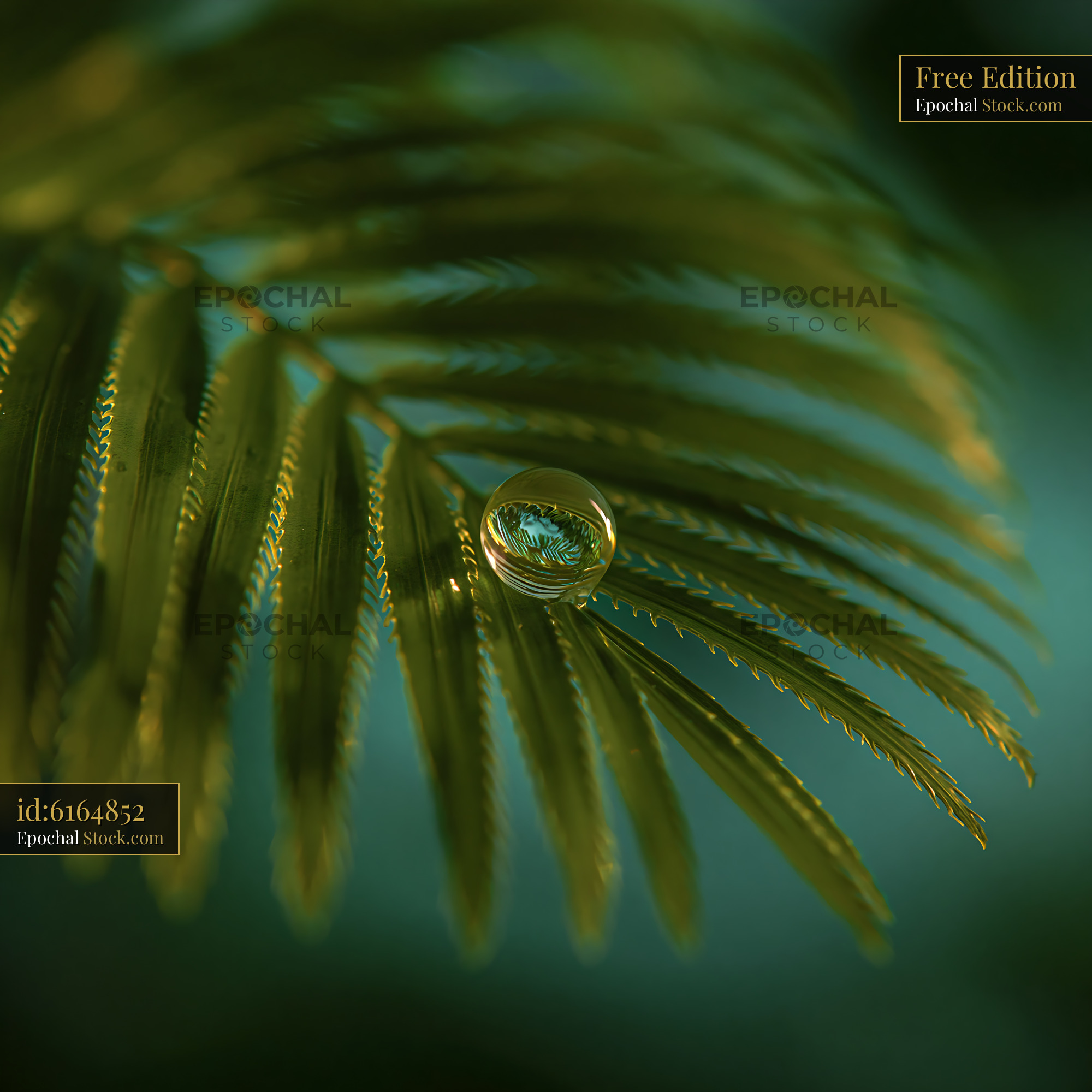 A crystal clear water droplet rests on a vibrant green leaf, illuminated by soft morning light, evoking themes of purity, growth, and the delicate balance of nature.