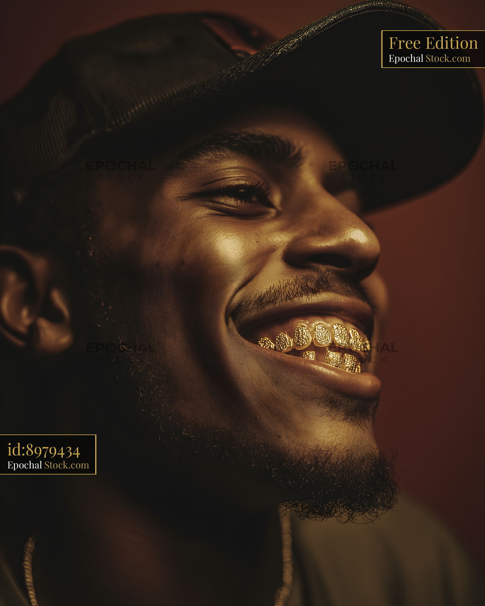 Smiling man with gold teeth in dim light Free Premium Stock Image