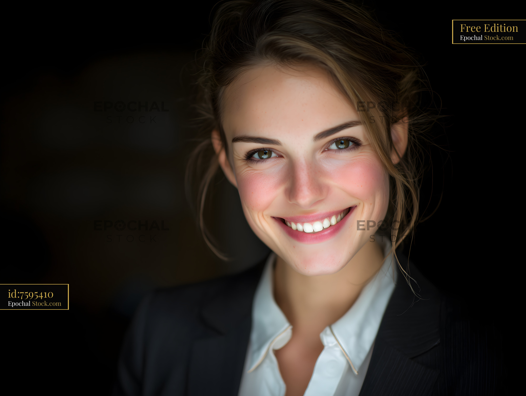 Smiling woman in a dark setting wearing a suit Free Premium Stock Photo