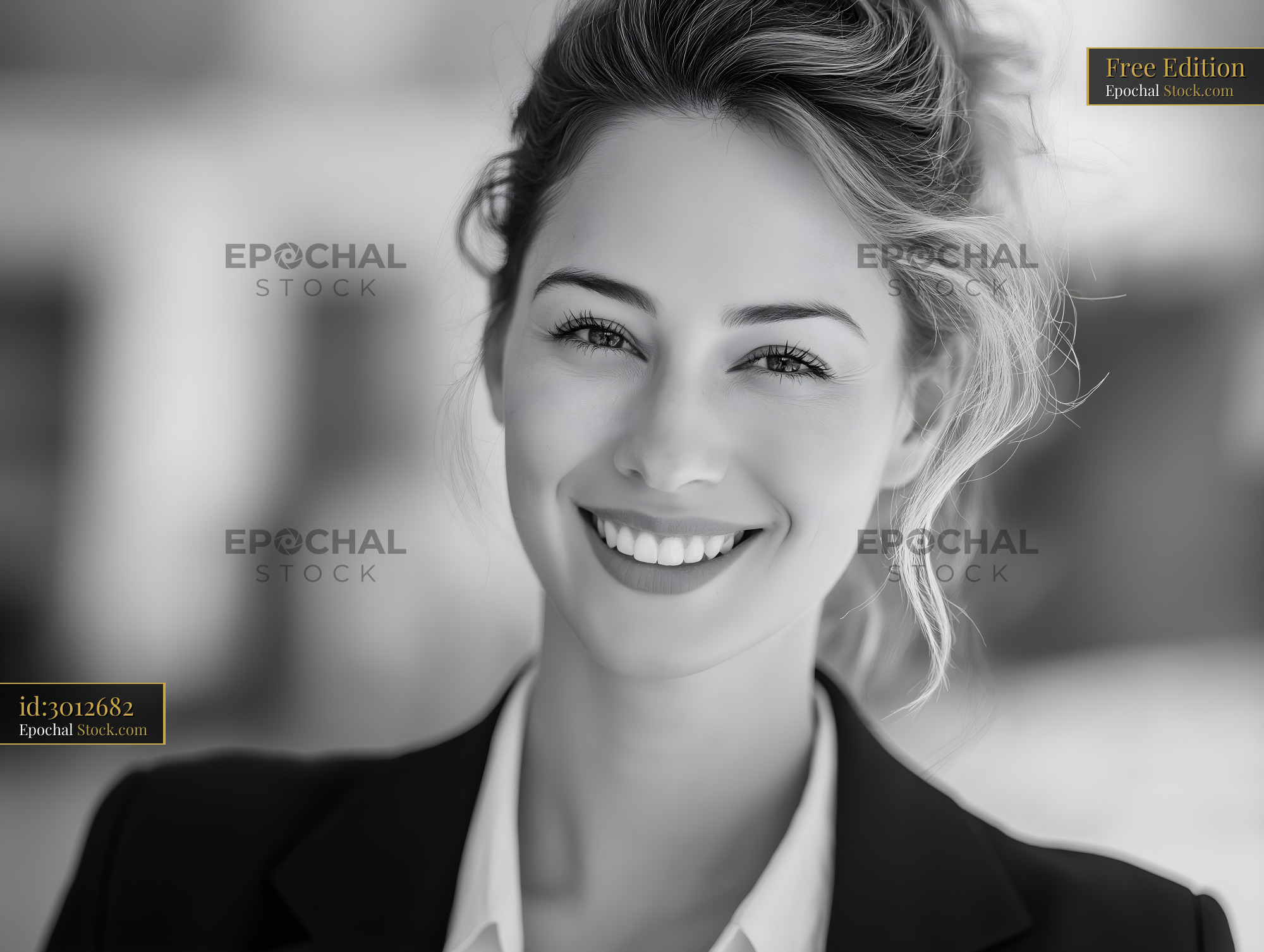 Smiling woman in black and white at outdoor location Free Premium Stock Photo