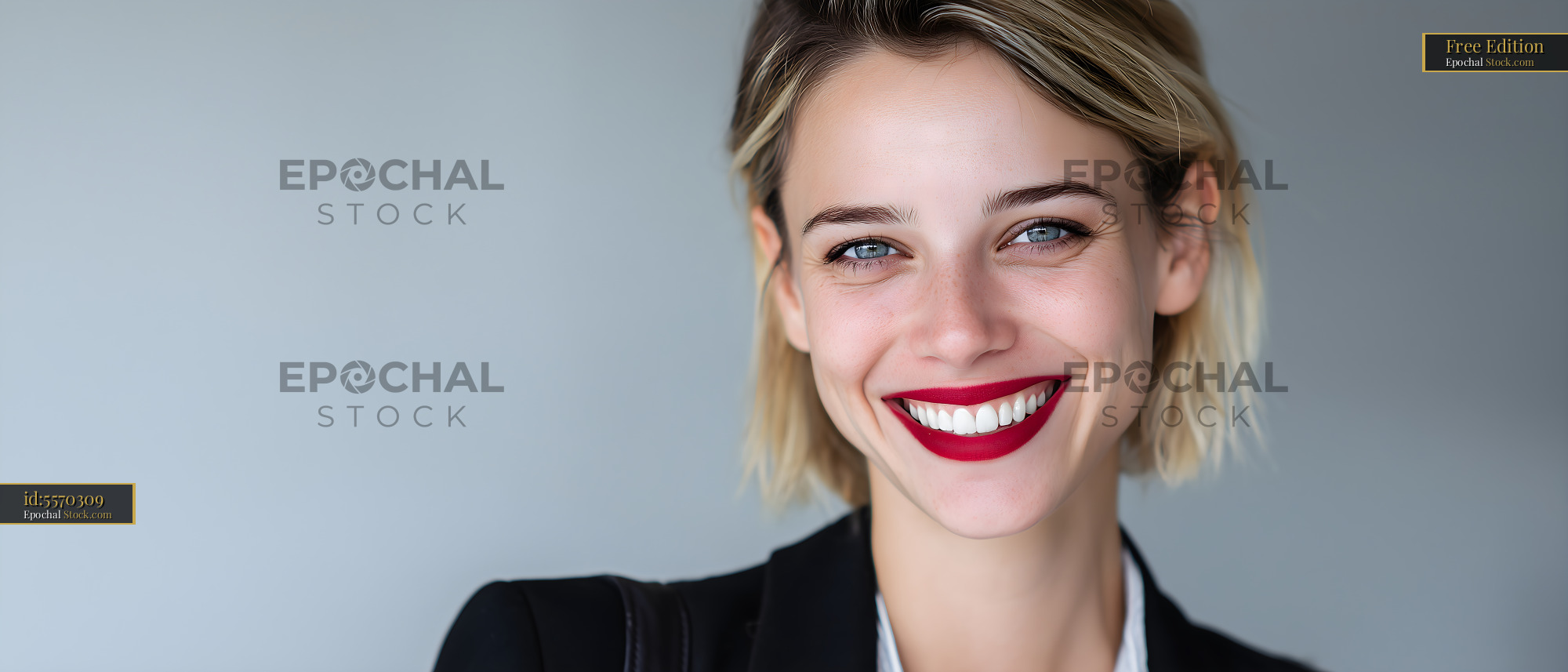 Smiling woman in black jacket with bright red lipstick Free Premium Stock Photo