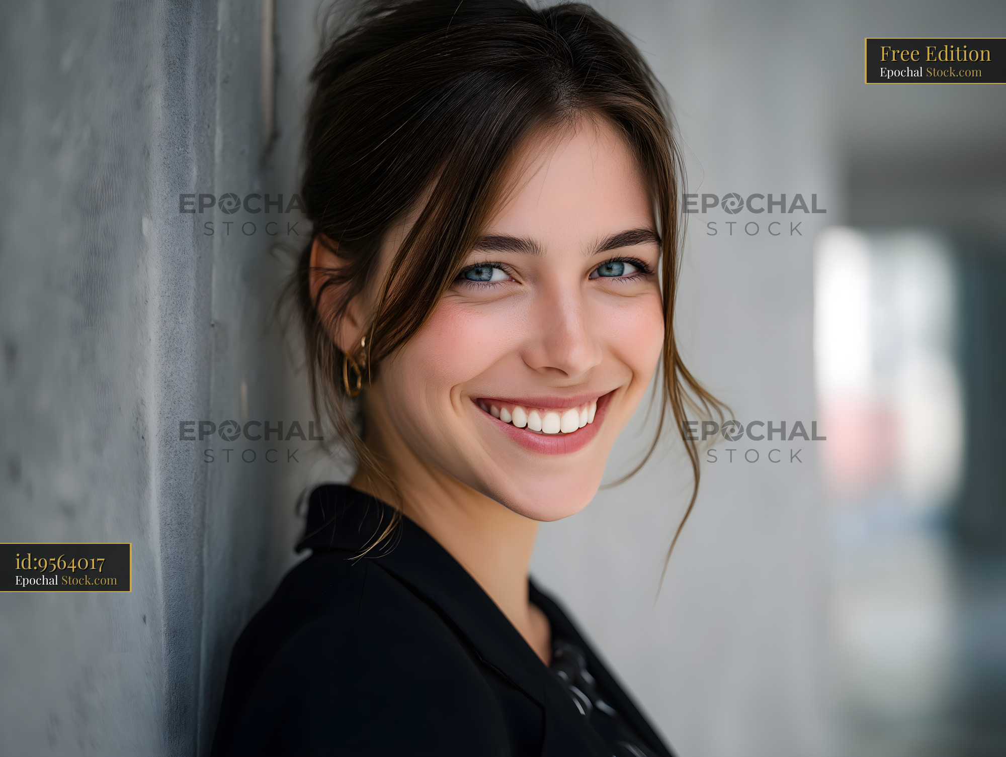 Smiling woman stands against a concrete wall during the day Free Premium Stock Photo