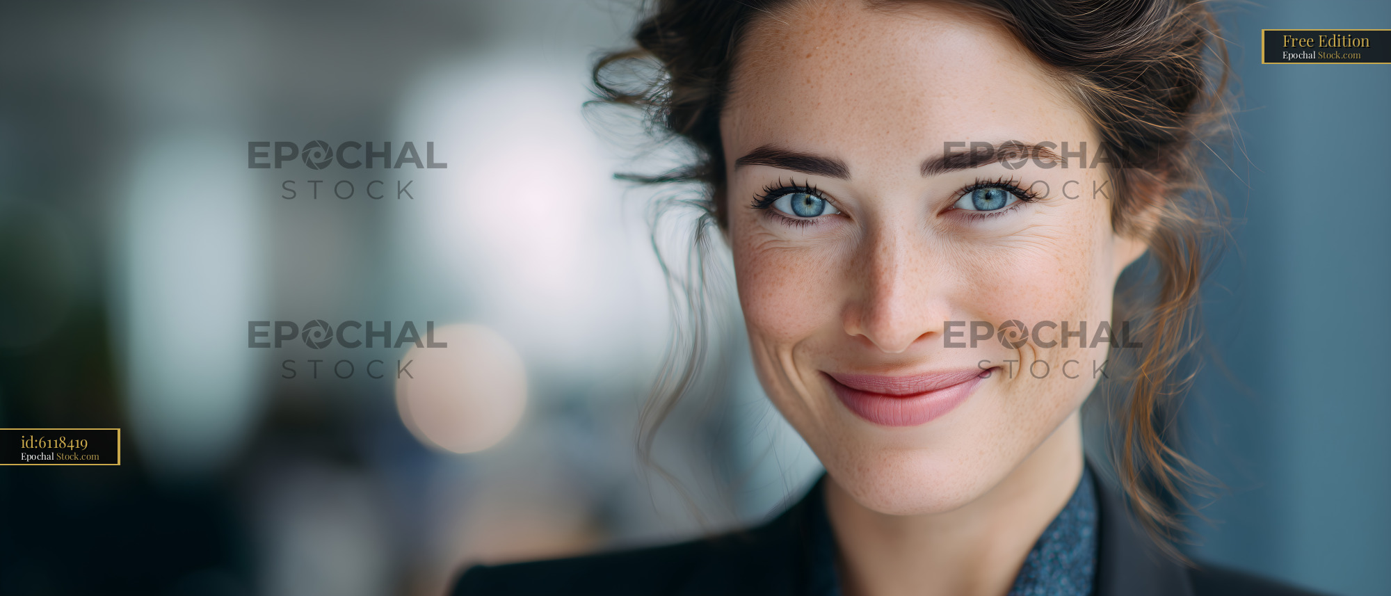 Smiling woman with blue eyes in office setting Free Premium Stock Photo