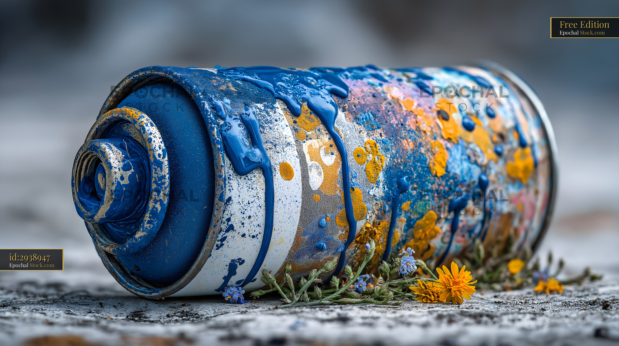 Spray paint can covered in flowers near a sidewalk Free Premium Stock Photo