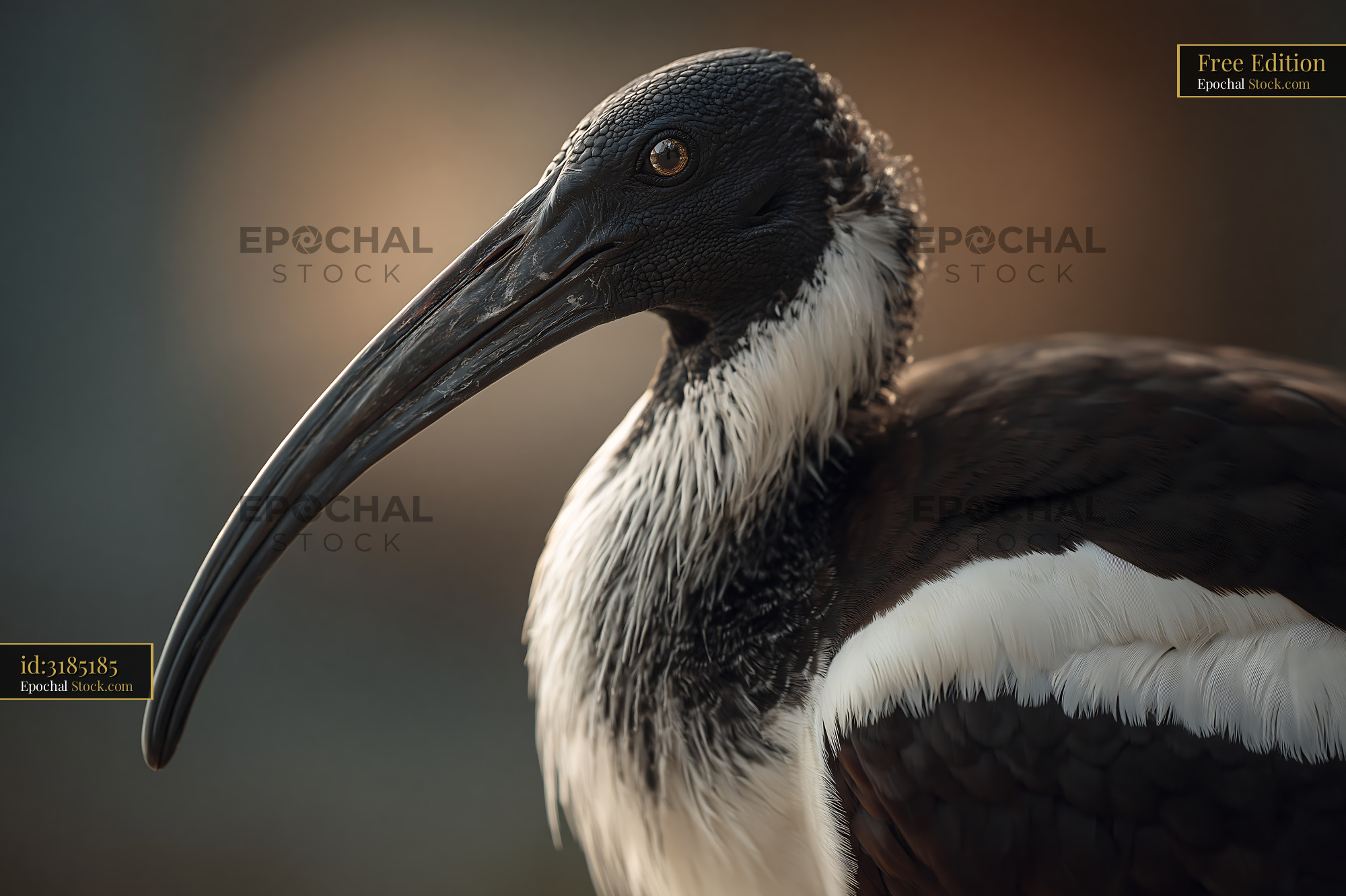 Detailed close-up of a straw-necked ibis highlighting its long curved beak and unique plumage, capturing a moment of quiet dignity and ancient wisdom in the wild.