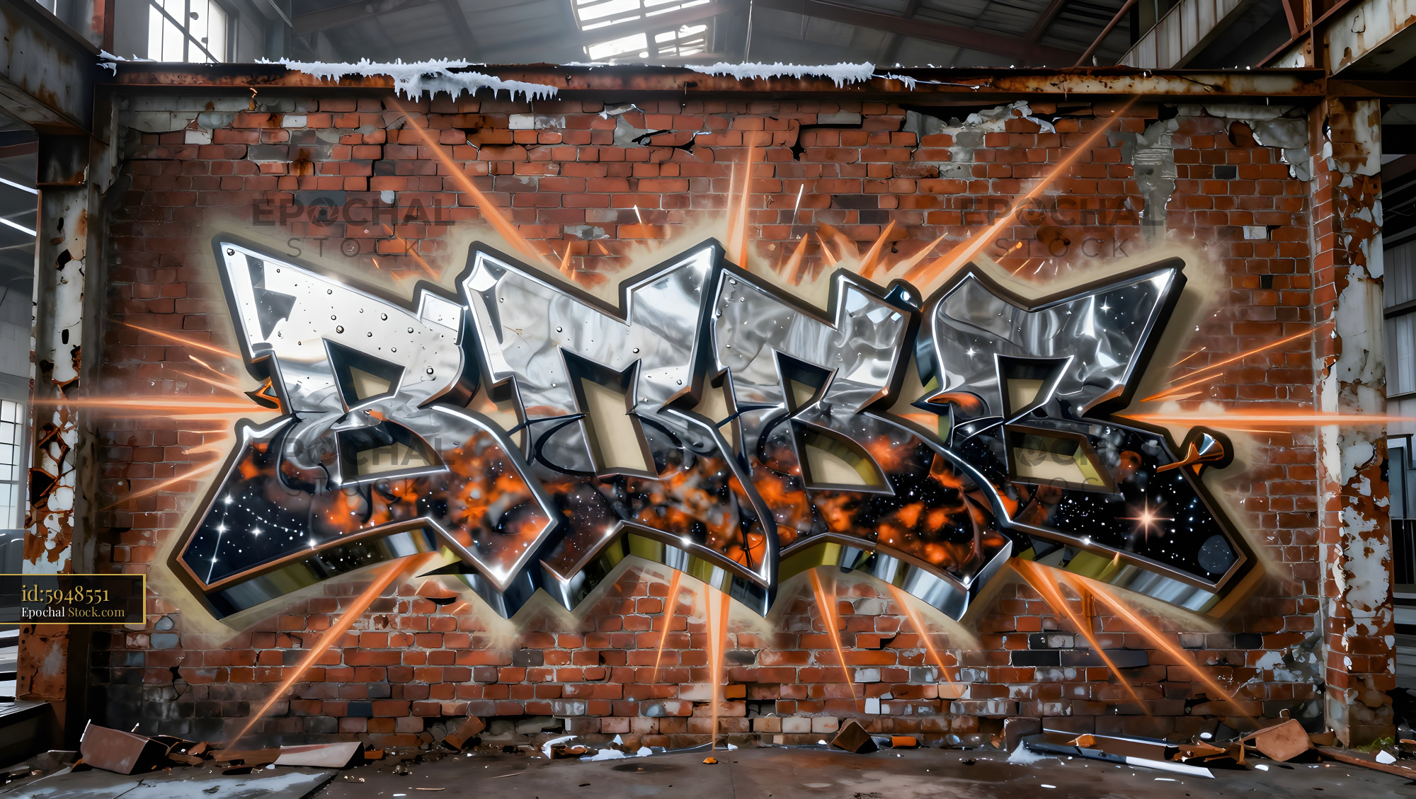 Street art on brick wall in urban setting Premium Stock Image