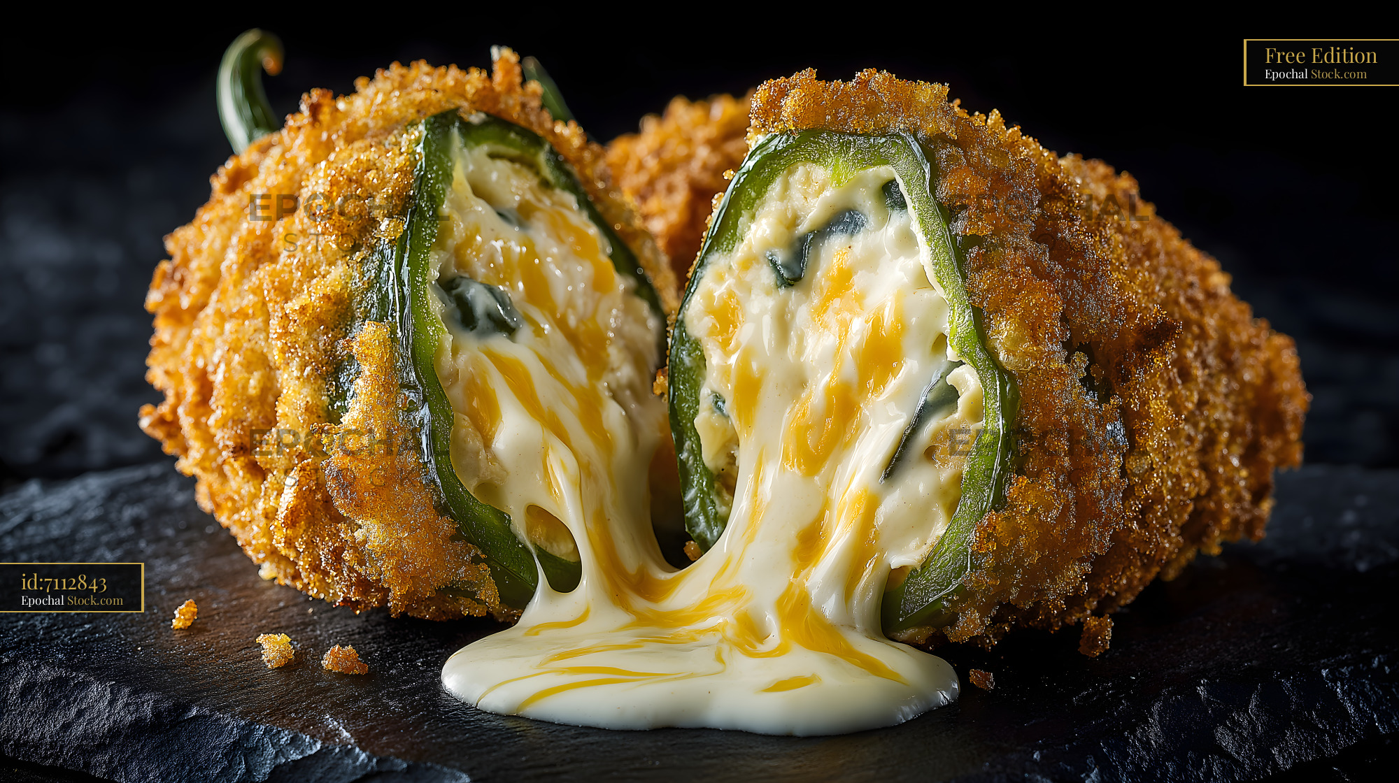 Stuffed jalapeno peppers with melted cheese and crispy coating Free Premium Stock Image