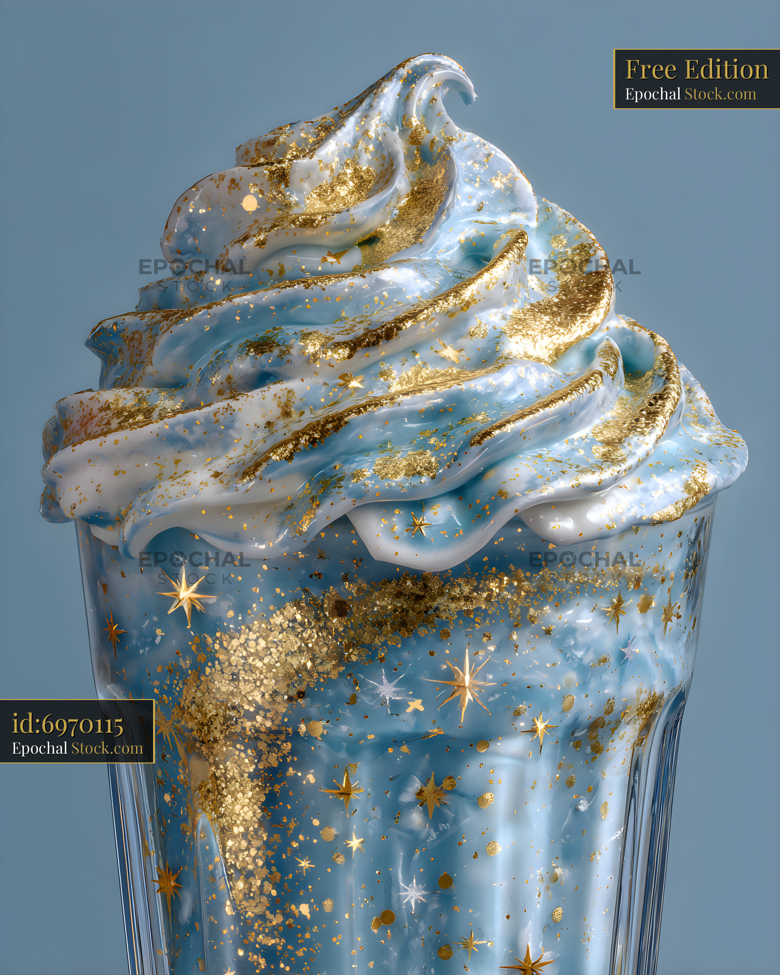 Swirl of blue and gold dessert with toppings in glass Free Premium Stock Photo