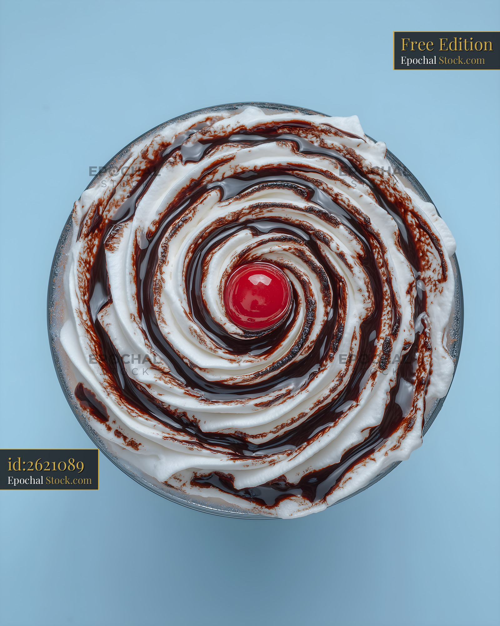 Swirl of whipped cream and chocolate syrup topped with a cherry Free Premium Stock Image