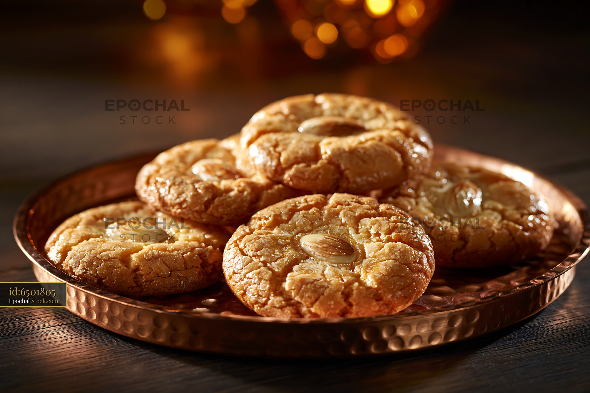 Golden-brown Turkish almond cookies with a chewy texture and sweet aroma, presented on a hammered tray in a warm, festive setting evoking hospitality and tradition.