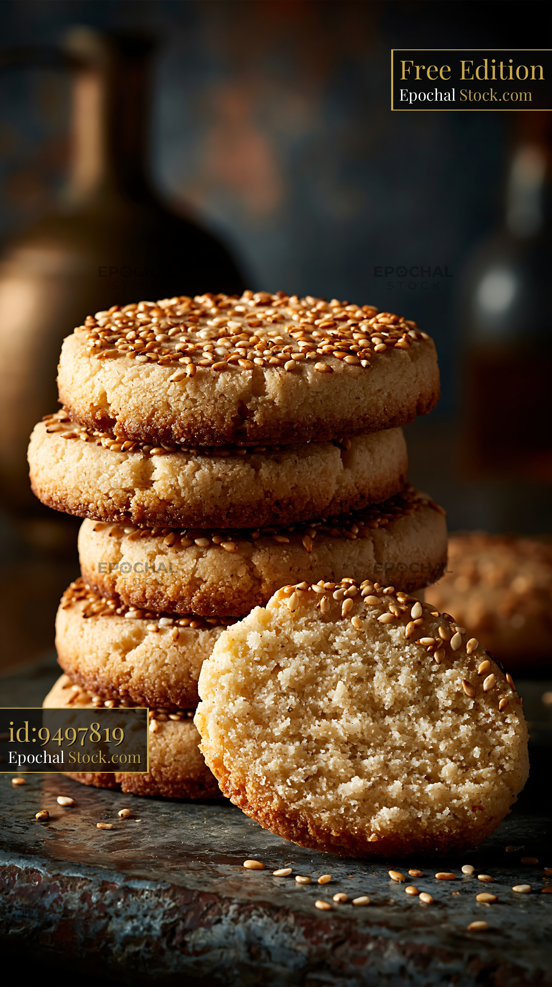Traditional mahlab spice biscuits topped with toasted sesame seeds