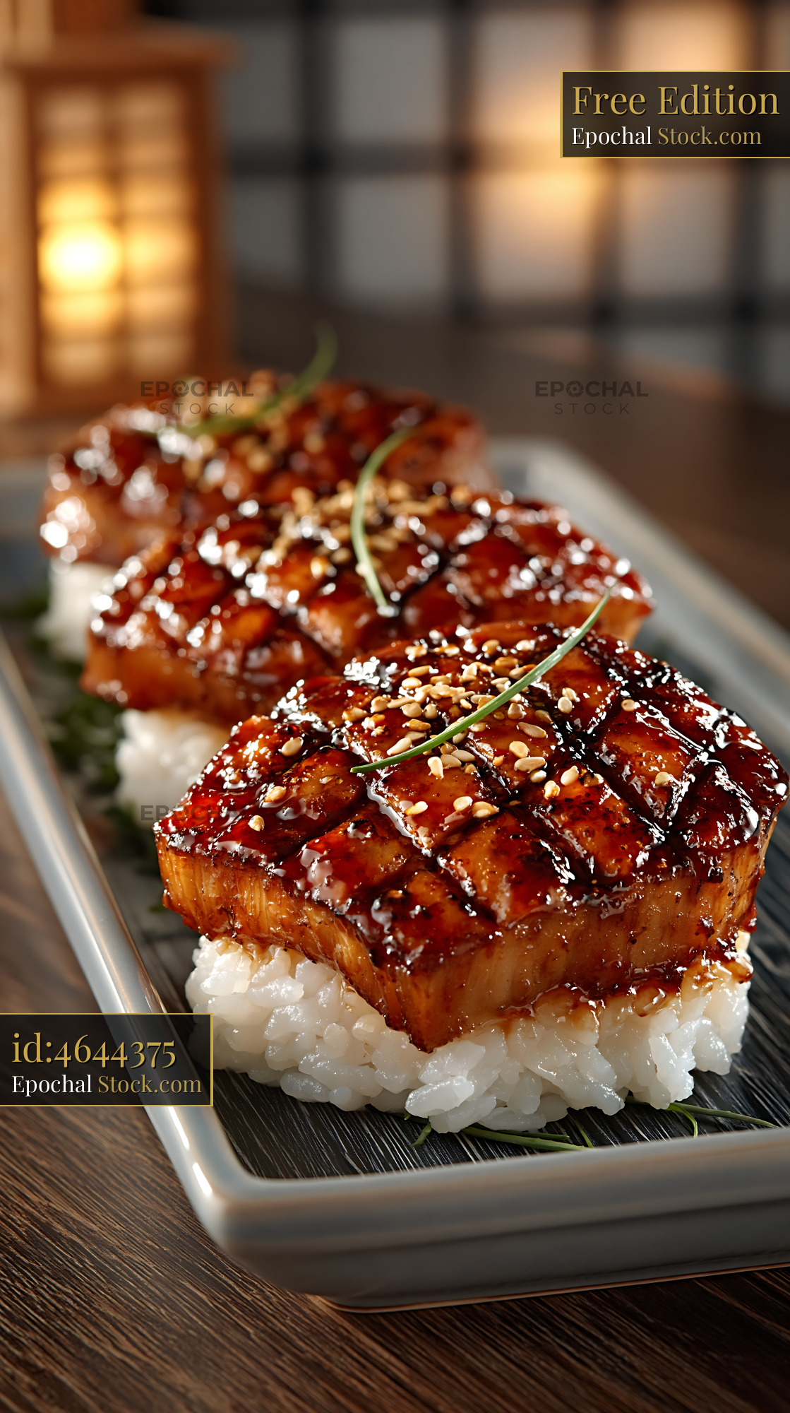 Truffle yellowtail sushi with glazed finish and sesame seeds