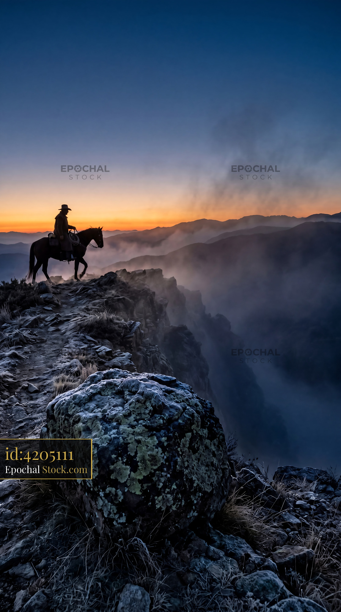 Twilight Cowboy Silhouette Misty Mountain Ridge