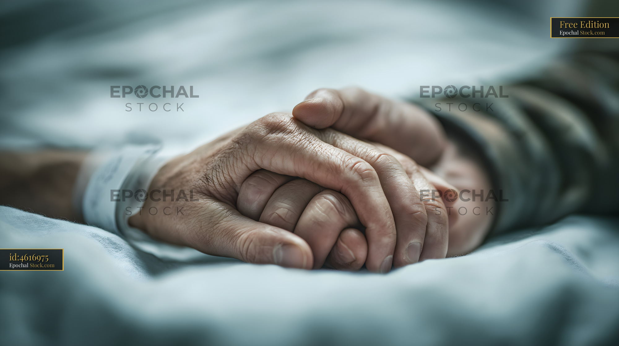 Two hands are clasped together in a hospital room. One hand is connected to an IV. The scene shows a moment of support and care between two people.