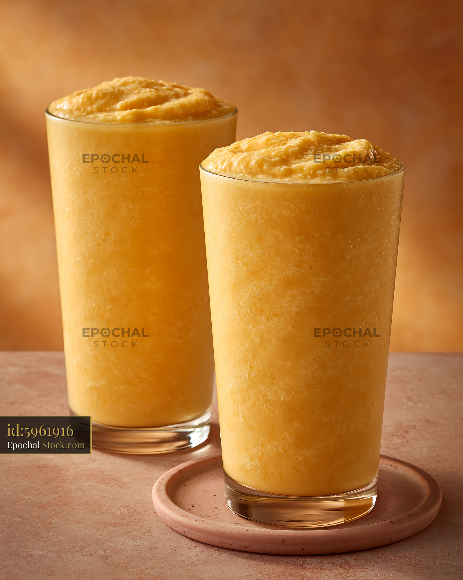 Two tall glasses filled with creamy pawpaw punch milkshakes, capturing a moment of pure refreshment and tropical indulgence with a smooth, golden texture.