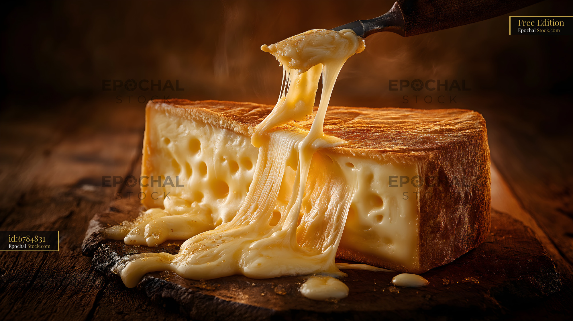 Warm cheese melting on wooden board in cozy kitchen Free Premium Stock Image