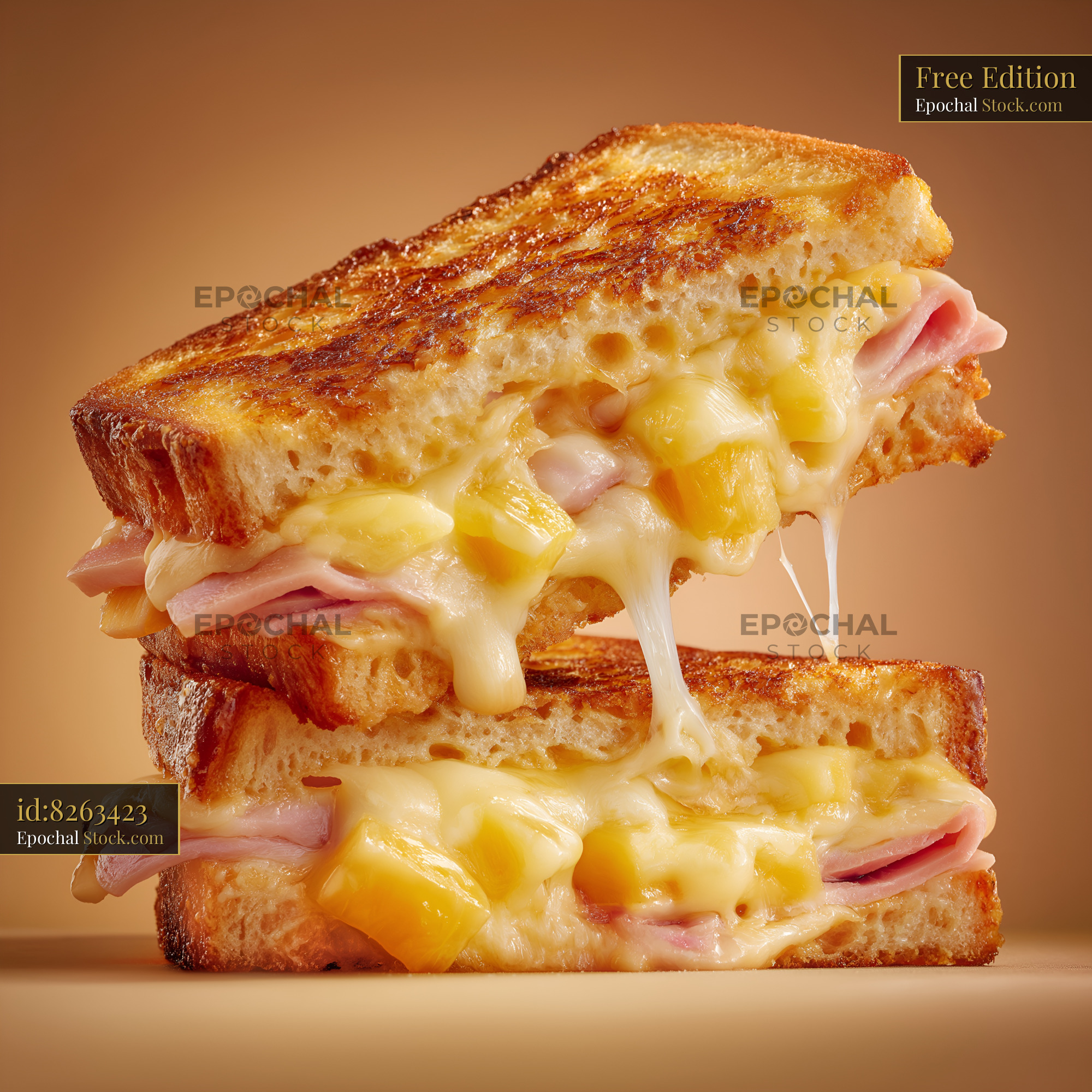 Warm sandwich with cheese, ham, and pineapple stacked high Free Premium Stock Photo