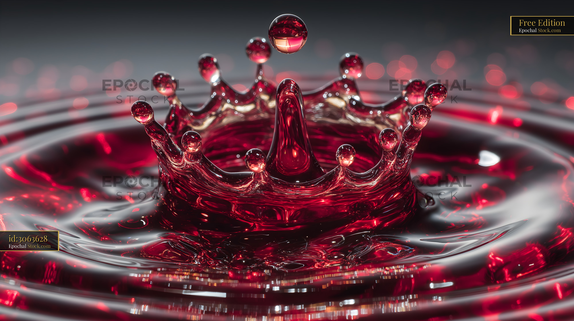 Water creates a splash and forms a crown shape with red liquid Free Premium Stock Image