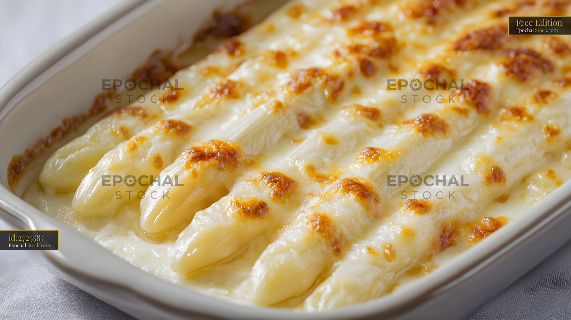 White asparagus baked with cheese in a dish Free Premium Stock Photo