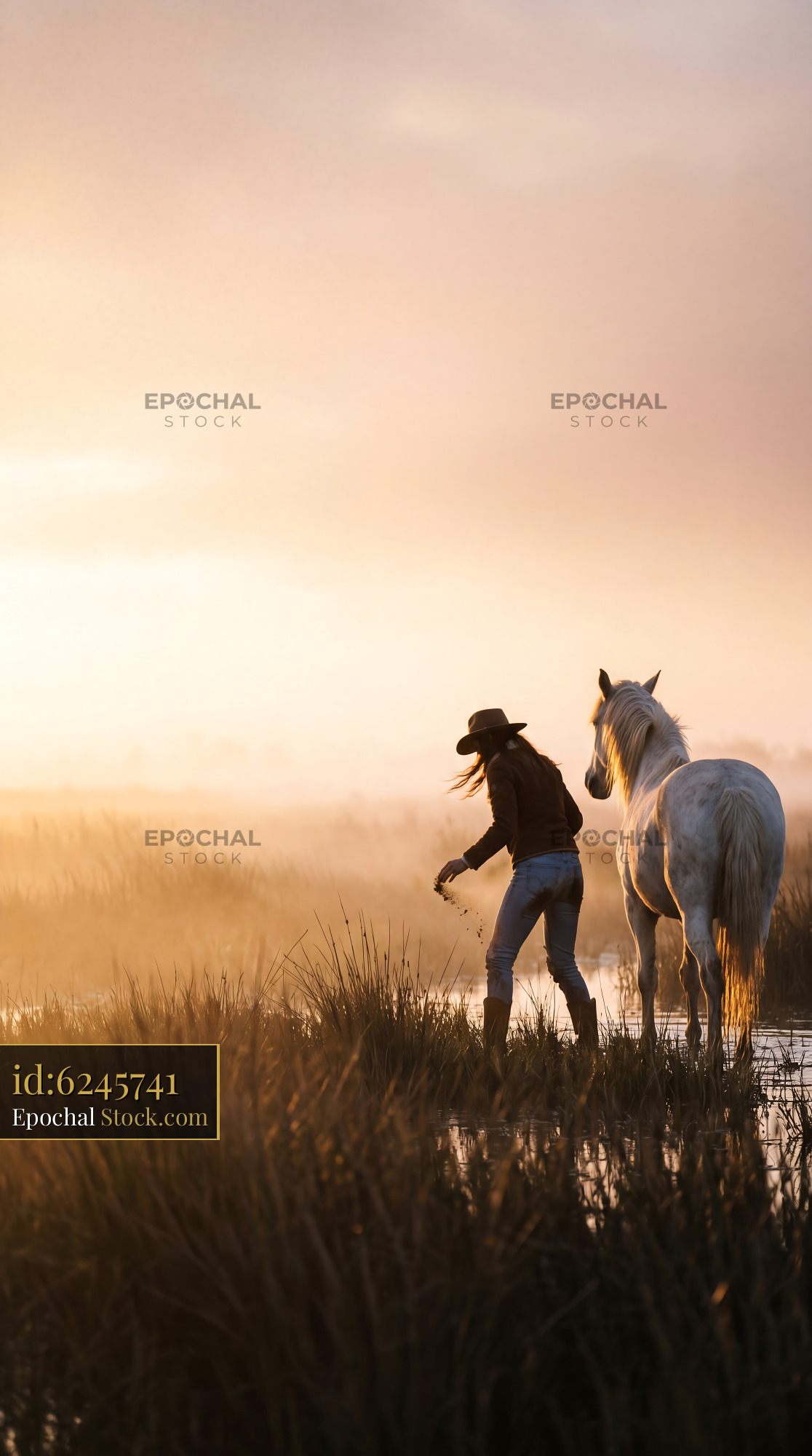 A serene equine scene in soft rose and gold. Perfect for western-themed nursery wallpaper, quilting cotton, or rustic home decor accents that capture wild freedom.