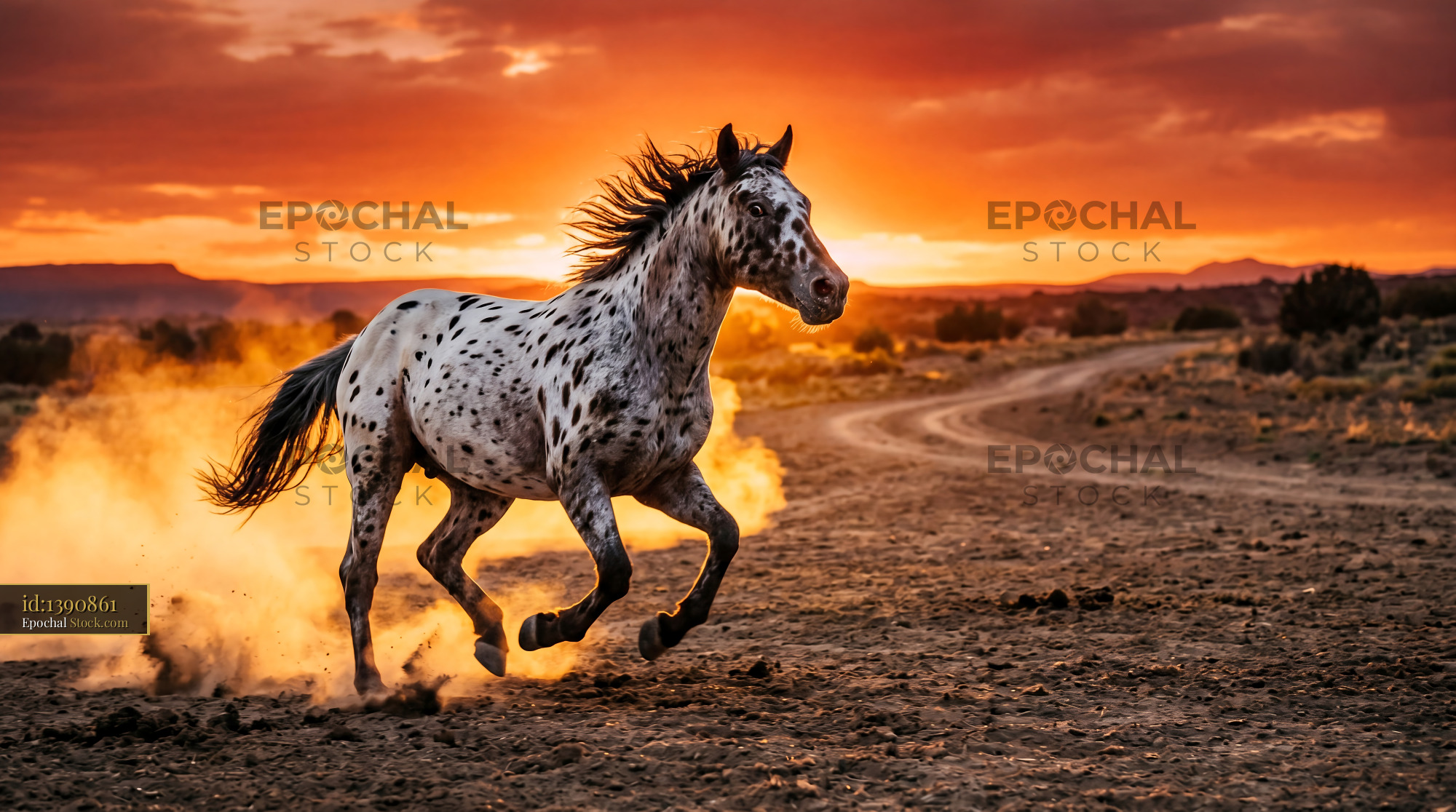 Wild Leopard Spot Appaloosa Galloping Sunset