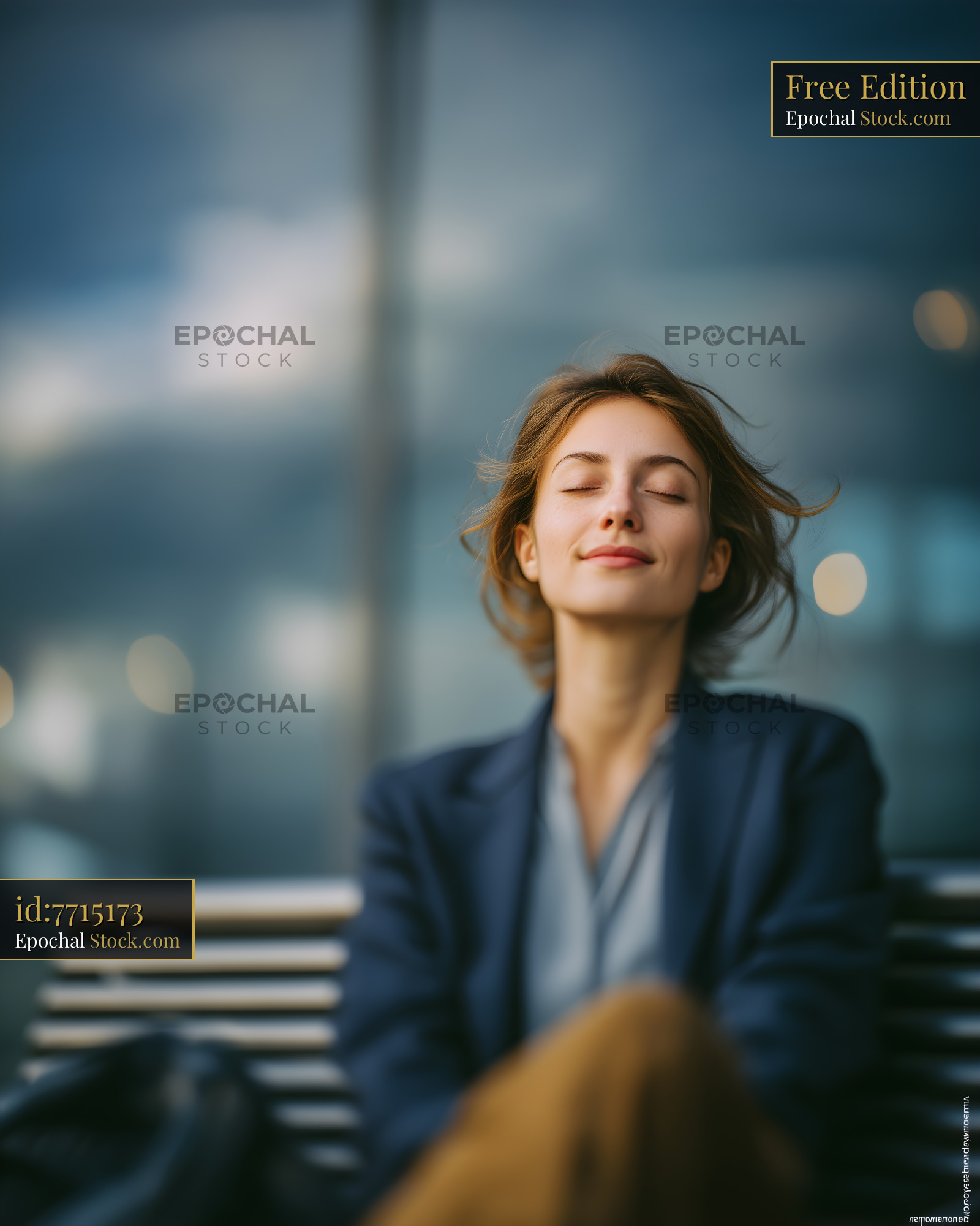 Woman enjoying a moment at a busy location during the day Free Premium Stock Image
