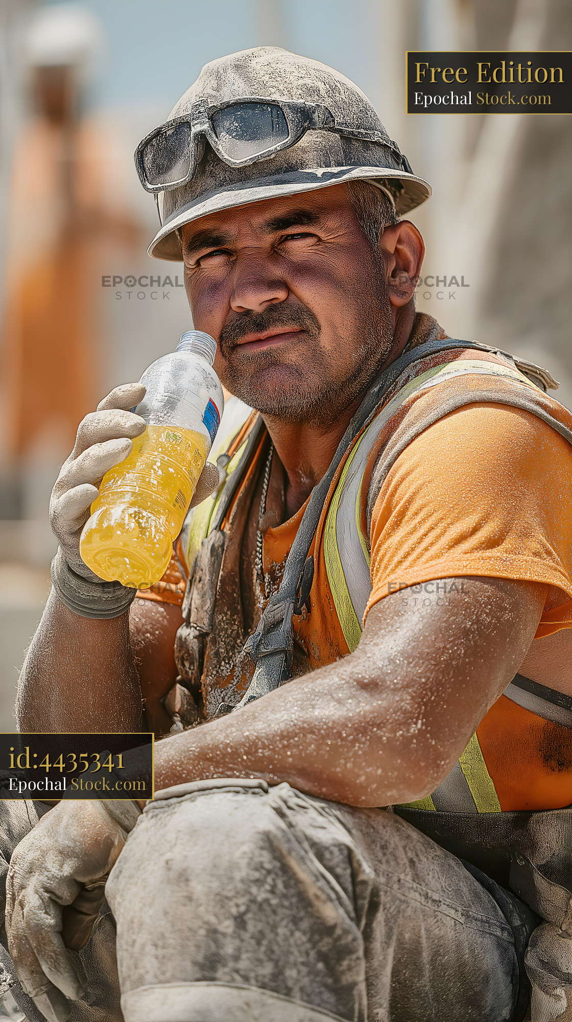 Worker takes a break in construction site while drinking Free Premium Stock Photo