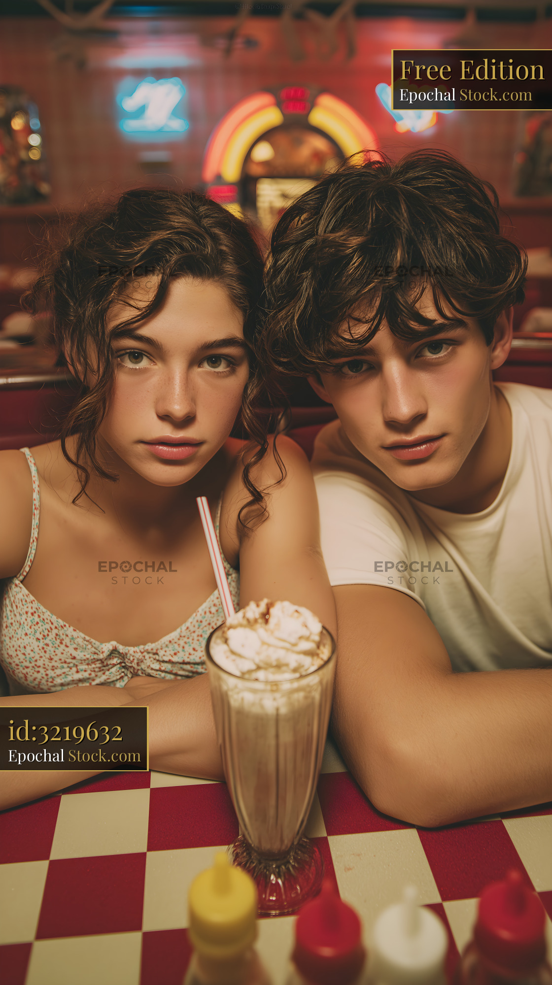 Young people enjoy milkshake in diner at night Free Premium Stock Image